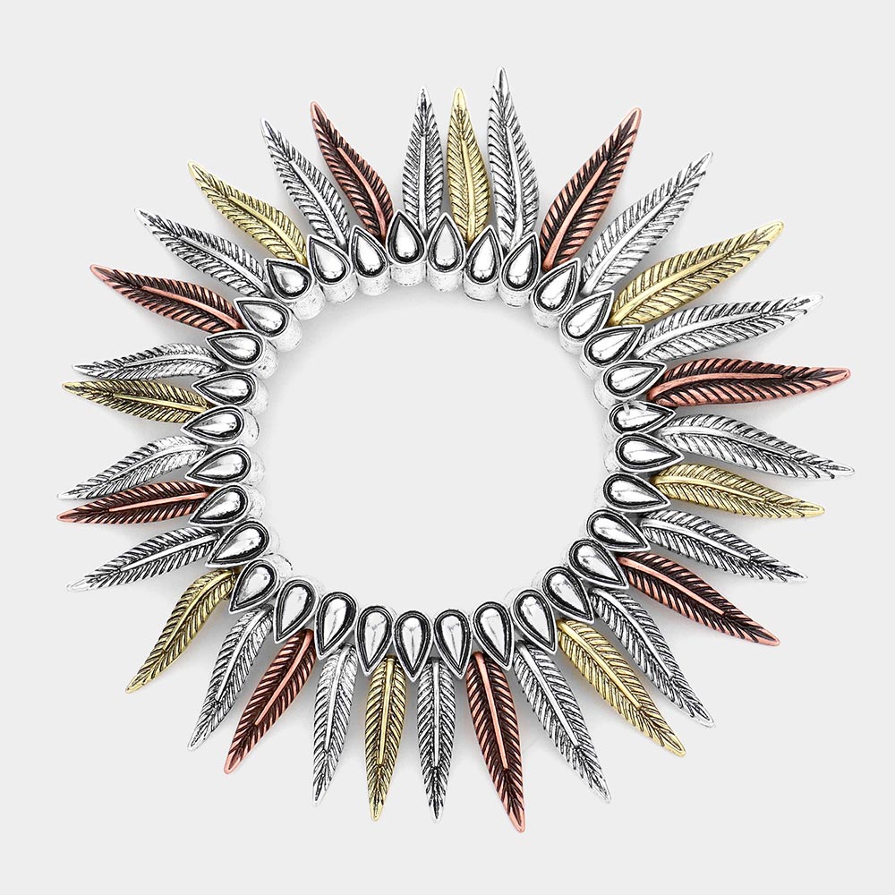 Antique Metal Feather Fringe Stretch Bracelet