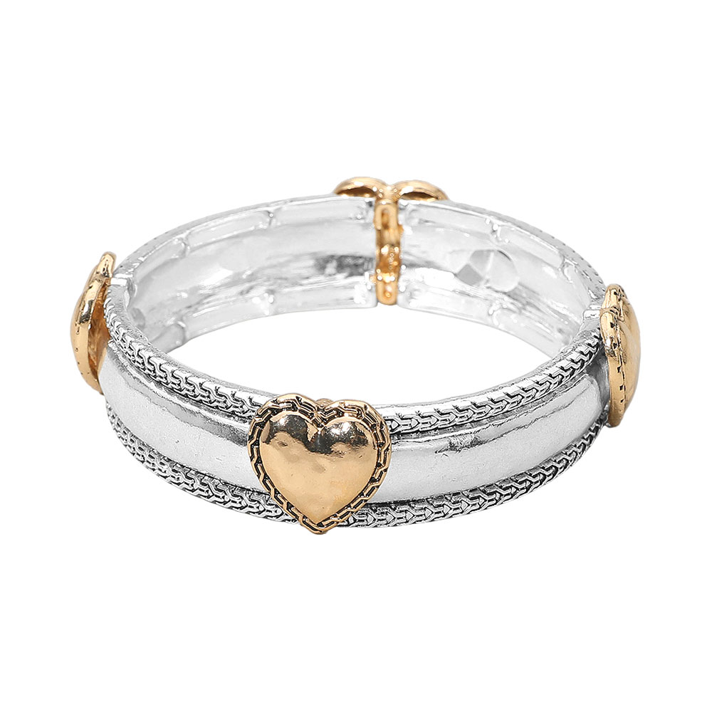Details • Size : 0.75" H • Stretchable • Showcase timeless charm with this heart accent stretch bracelet featuring textured detailing and framed heart motifs. Designed with a flexible slip-on fit for easy comfort, it pairs effortlessly with casual or dressy looks and makes a thoughtful everyday accessory or gift. • Lead and Nickel Compliant