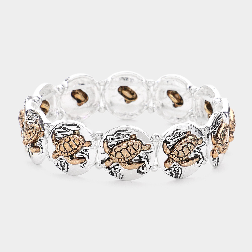 Antique Metal Sea Turtle Pointed Stretch Bracelet