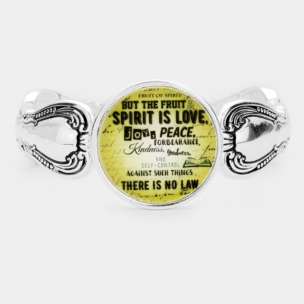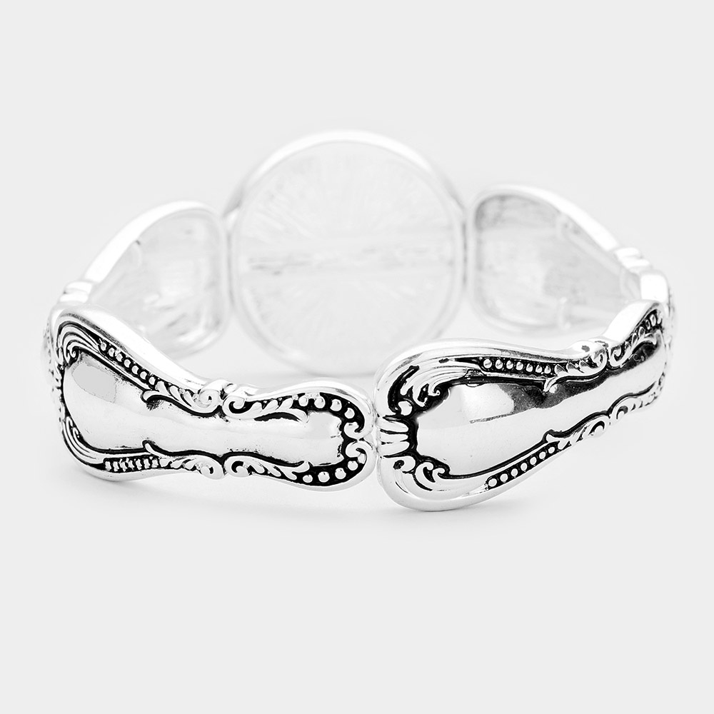 Antique Pattern Silver Metal Message Stretch Bracelet