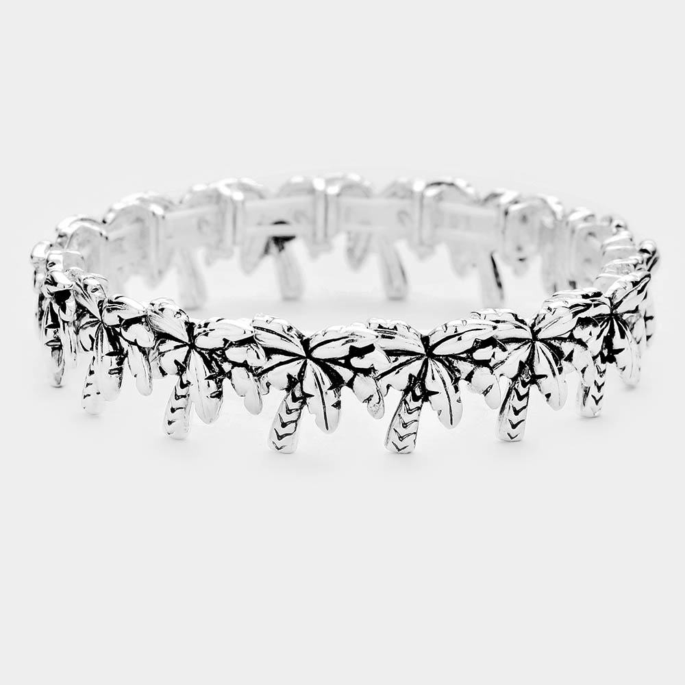 Antique Silver Metal Palm Tree Stretch Bracelet