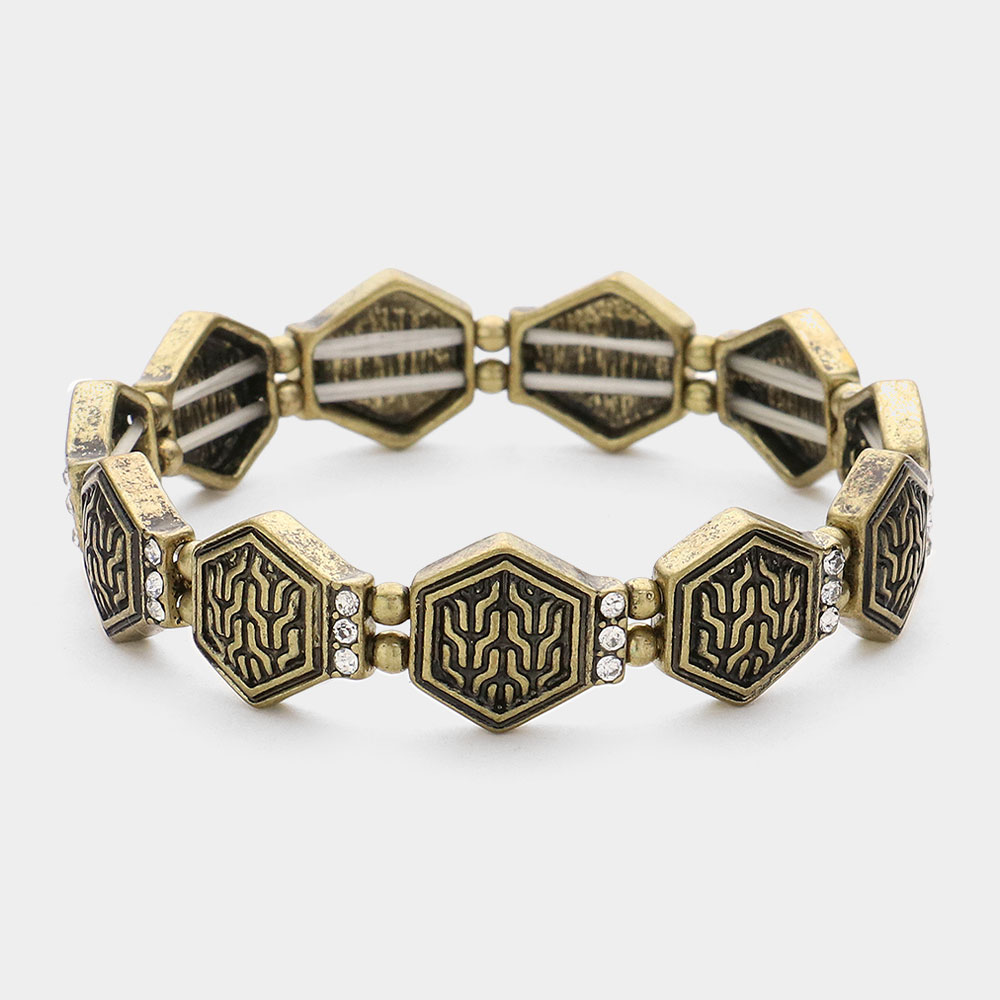 Baguette Glass Stone Pointed Pearl Embellished Stretch Bracelet