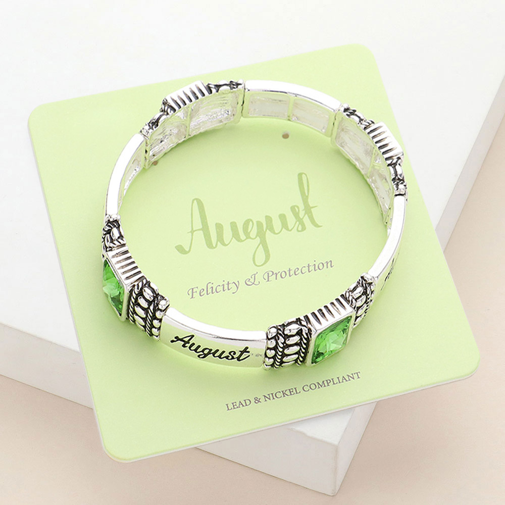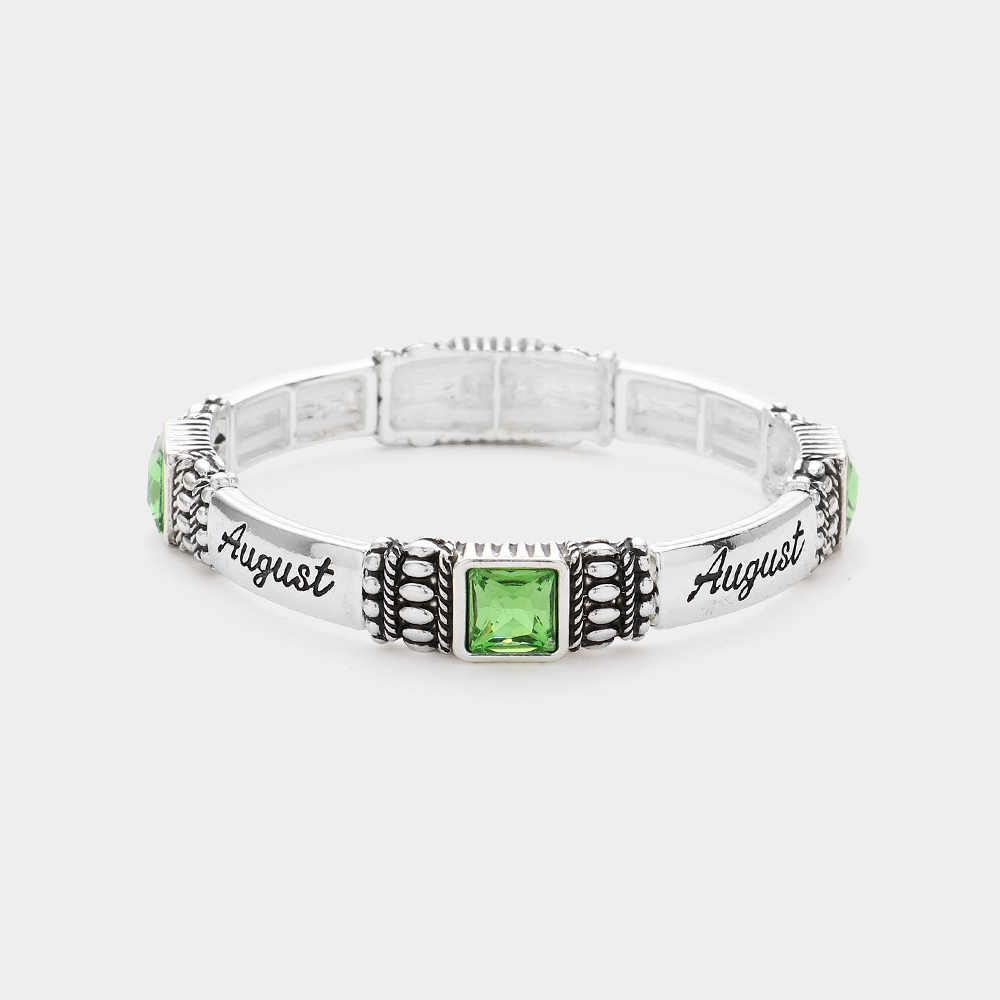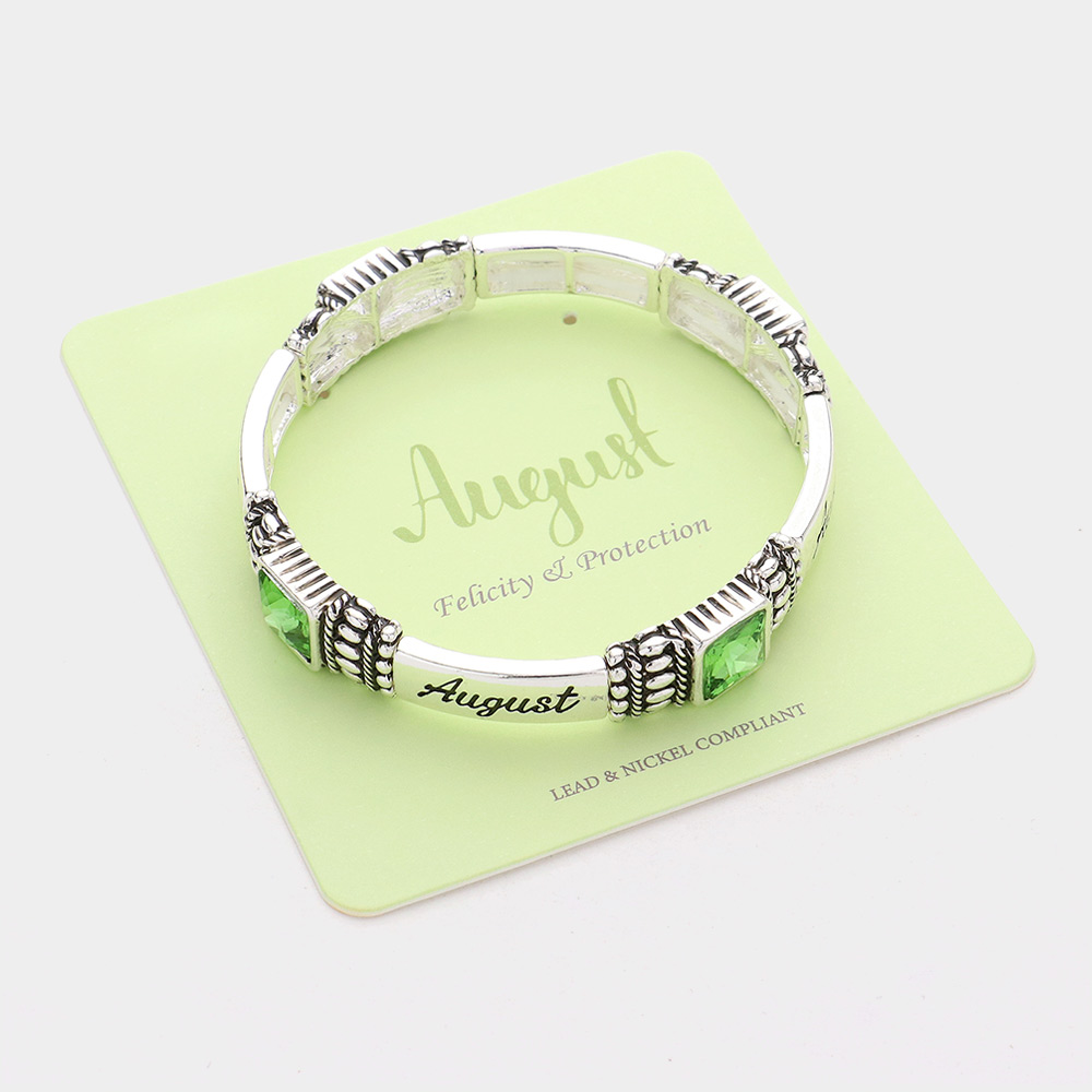 August - Birthstone Heart Charm Multi Beaded Bracelet