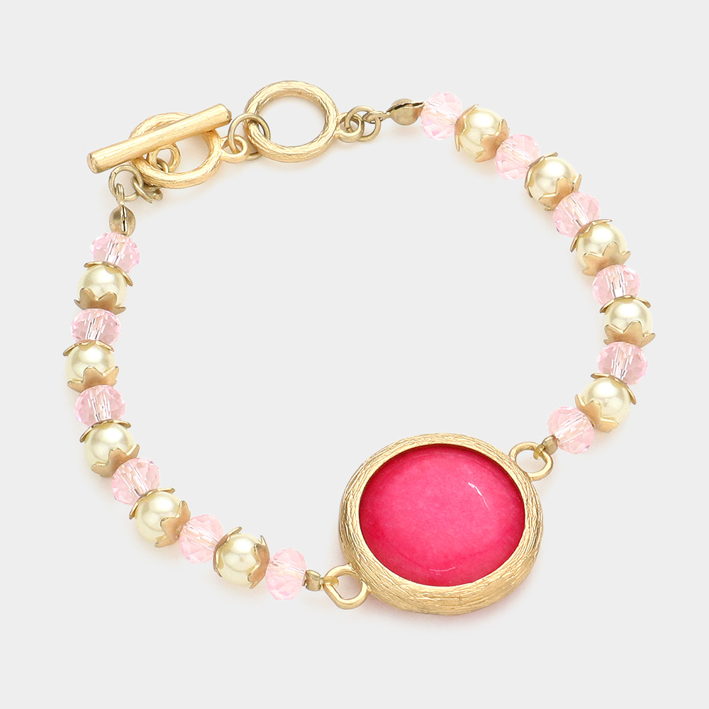 Beaded Round Gemstone Stretch Toggle Bracelet