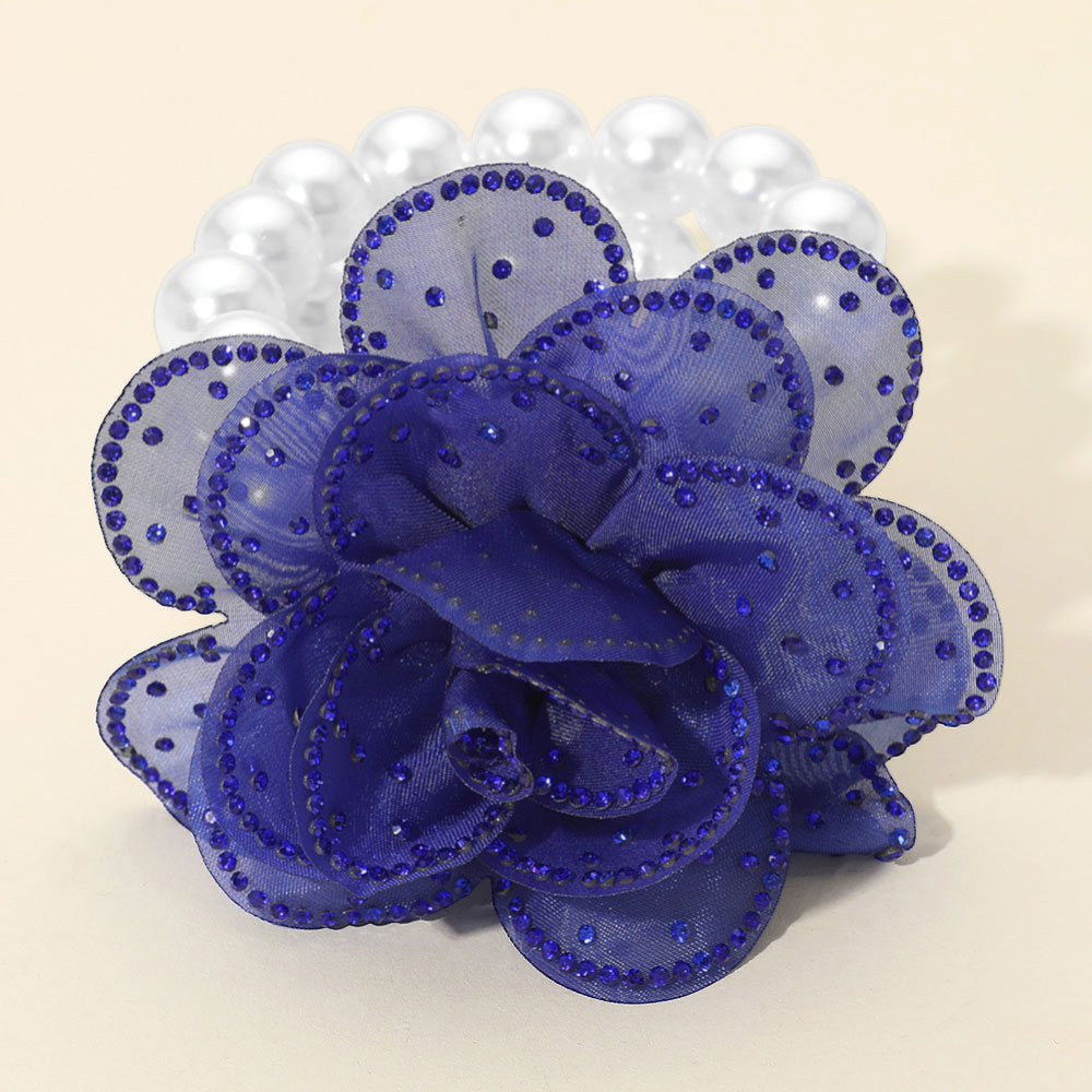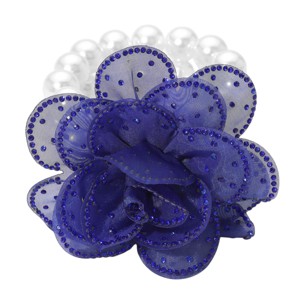 Bling Studded Fabric Flower Statement Faux Pearl Beaded Stretch Bracelet