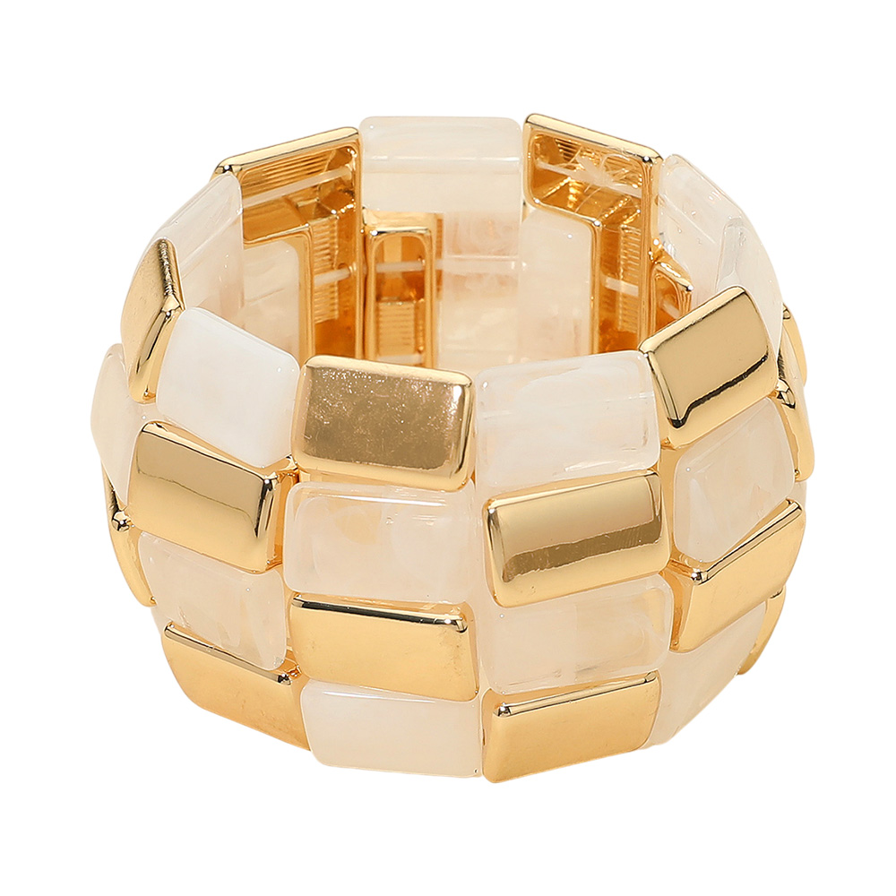 Bold Geometric Resin Metal Beaded Wide Stretch Bracelet