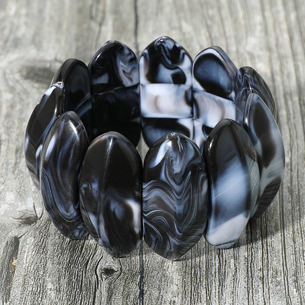 Bold Marbled Oval Penal Beaded Stretch Bracelet Bold Marbled Oval Penal Beaded Stretch Bracelet Bold Marbled Oval Penal Beaded Stretch Bracelet
