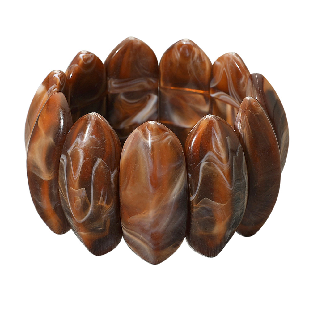 • Elevate your look with this marbled stretch bracelet featuring pointed oval panels for a chic and contemporary vibe. Its bold design and flexible fit make it perfect for stacking or wearing solo as a statement piece, adding versatile style to both casual and dressy outfits.