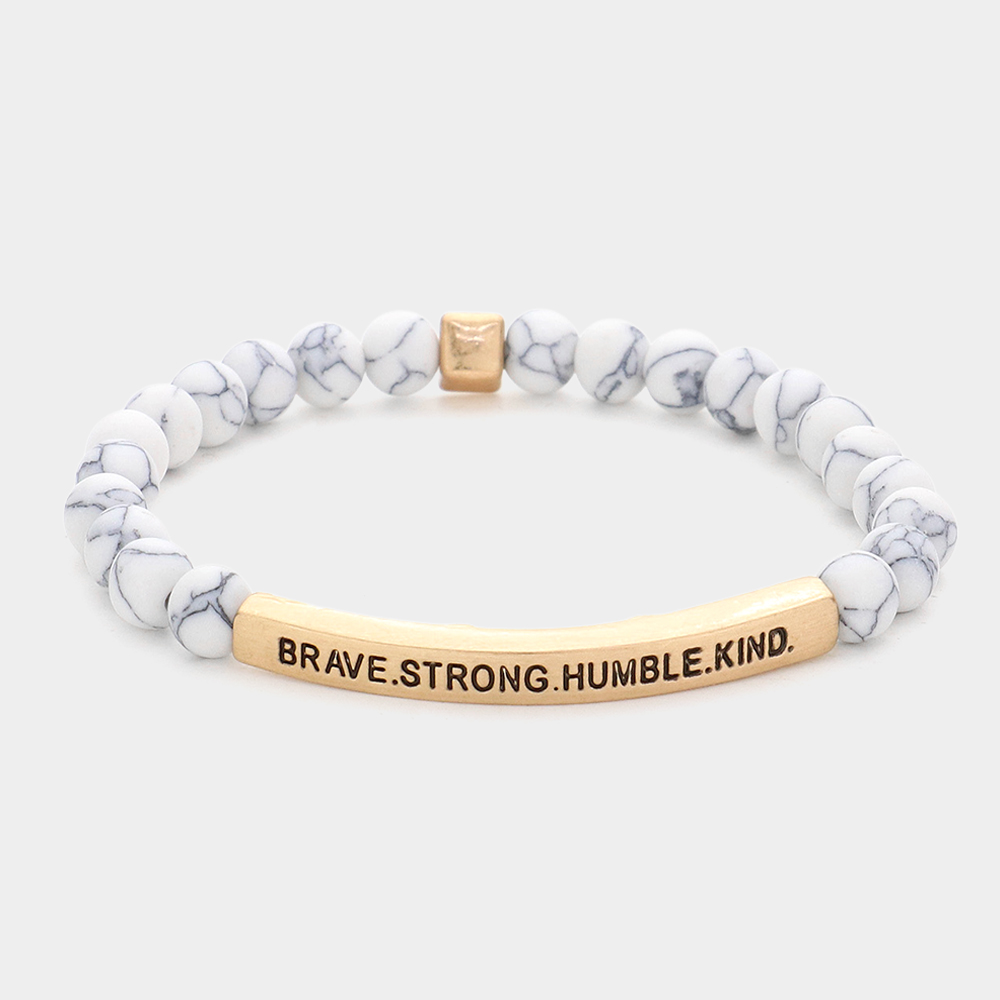 Brave. Strong. Humble. Kind Message Natural Stone Stretch Bracelet