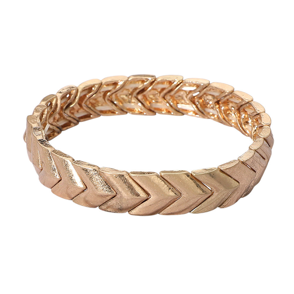 Details • Size : 0.3" H • Stretchable • Modern stretch bracelet featuring sleek chevron links arranged in a continuous band, offering a clean and stylish look. Perfect for stacking or wearing solo, this accessory adds a subtle yet impactful touch to everyday outfits or layered bracelet sets. • Lead and Nickel Compliant