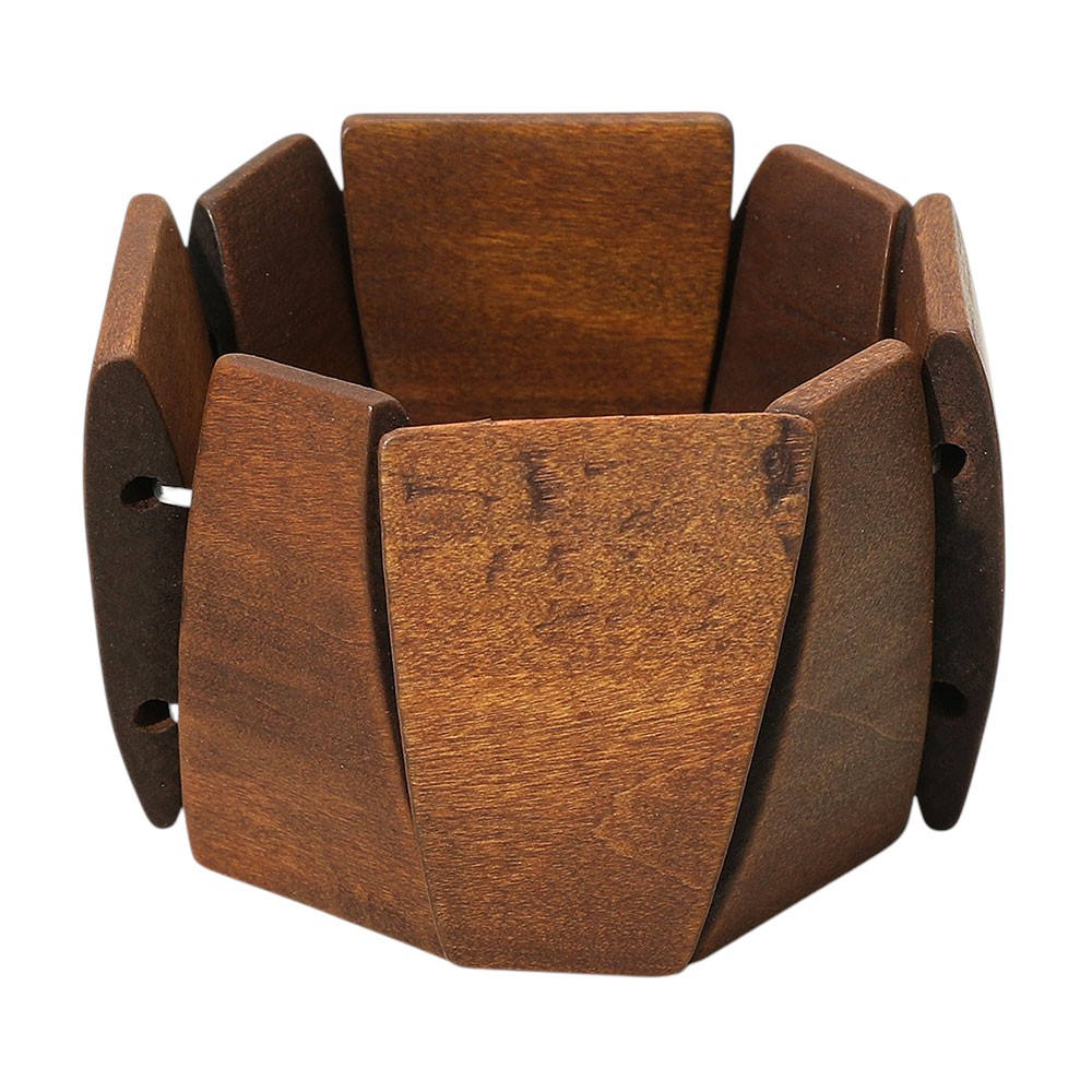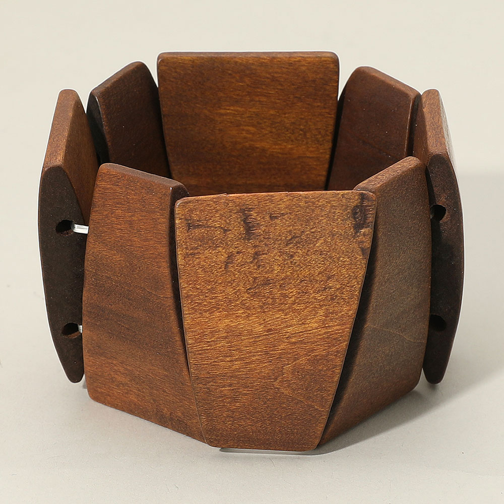 Chunky Geometric Wooden Plate Beaded Stretch Bracelet