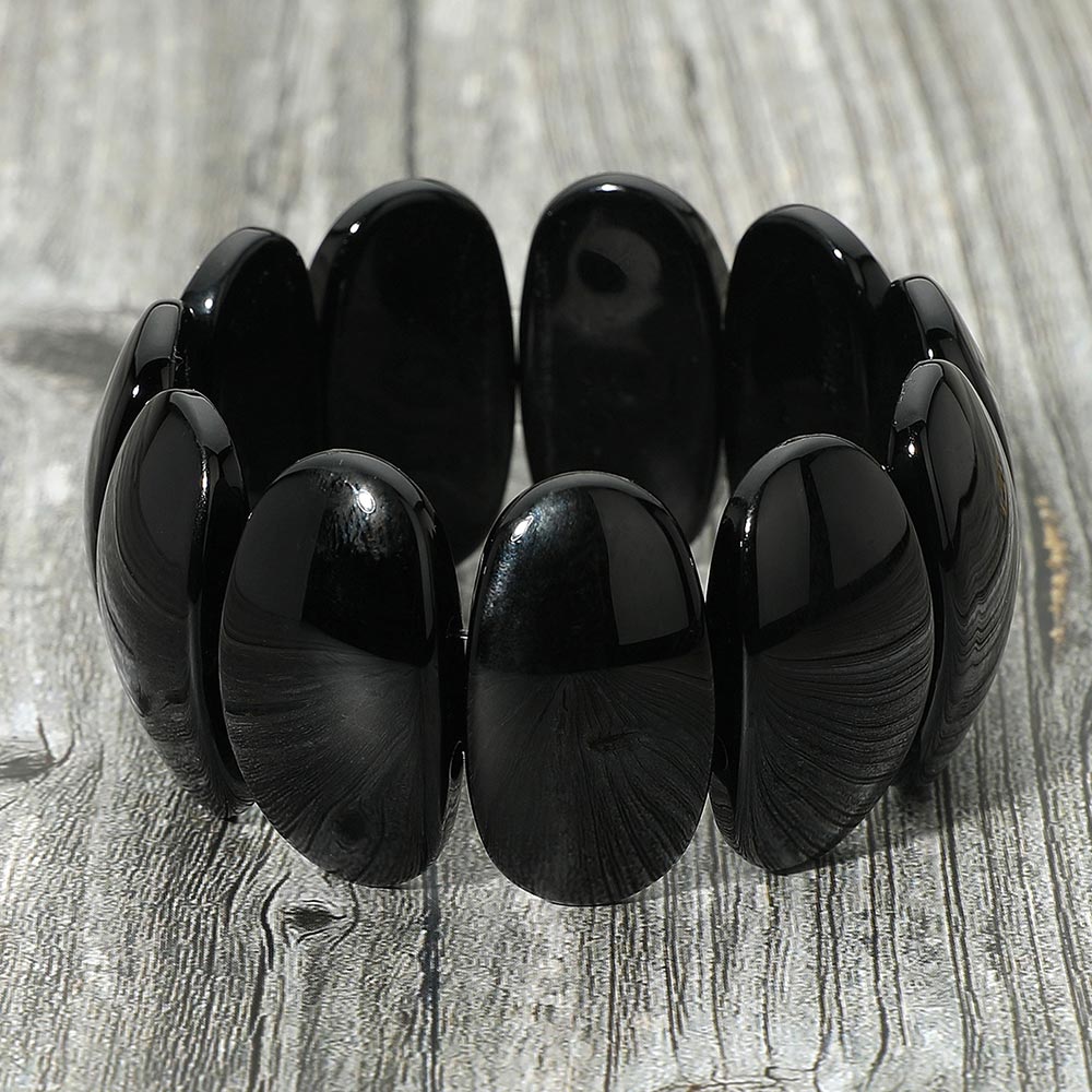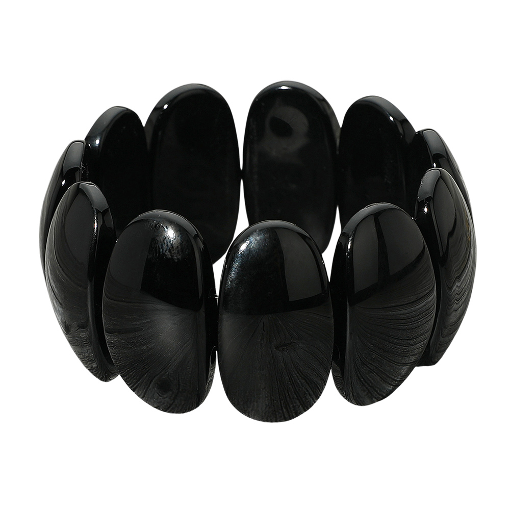 Chunky Oval Resin Panel Beaded Stretch Bracelet Chunky Oval Resin Panel Beaded Stretch Bracelet