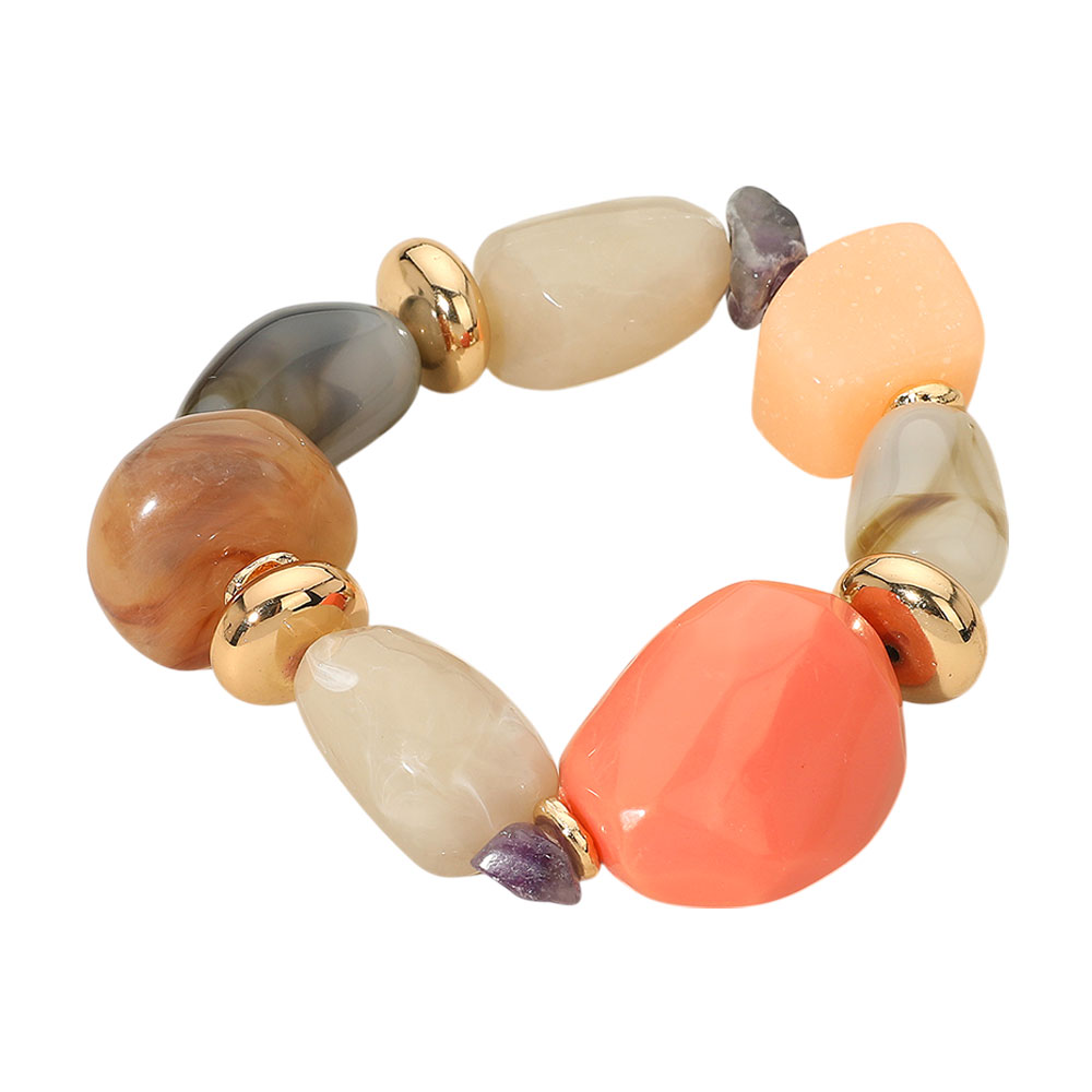 Details • Size : 1.2" H • Stretchable • Stylish chunky resin bracelet with mixed-shape beads and metallic accents. Stretch design offers easy wear and a secure fit. Ideal for casual or boho-inspired outfits, adding a bold touch of charm. • Lead and Nickel Compliant