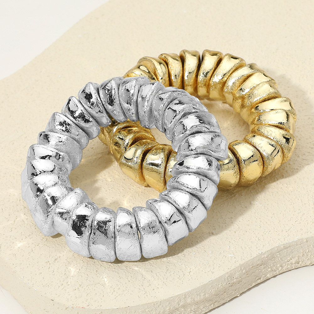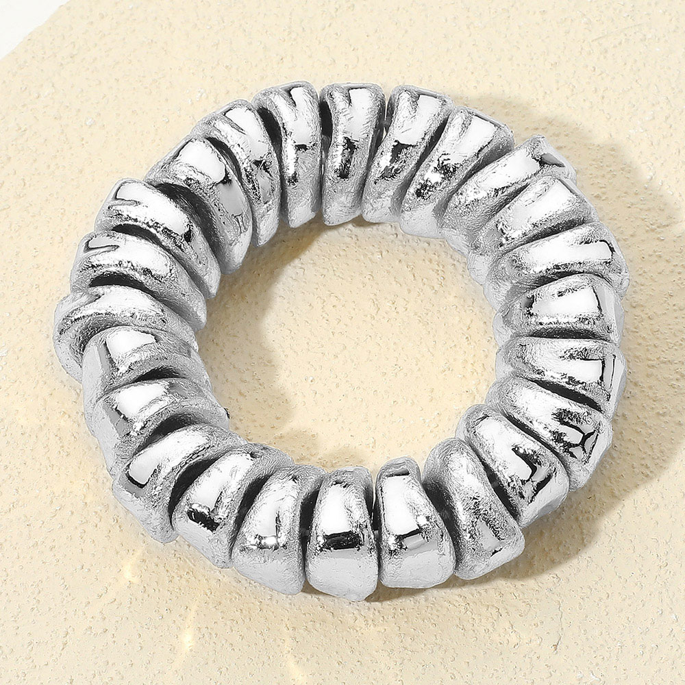 Details • Size : 0.8" H • Stretchable • Make a statement with this sculpted stretch bracelet featuring chunky metallic beads in an organic, high-shine finish. Bold yet comfortable, this accessory adds instant edge to your everyday or evening look. • Lead and Nickel Compliant