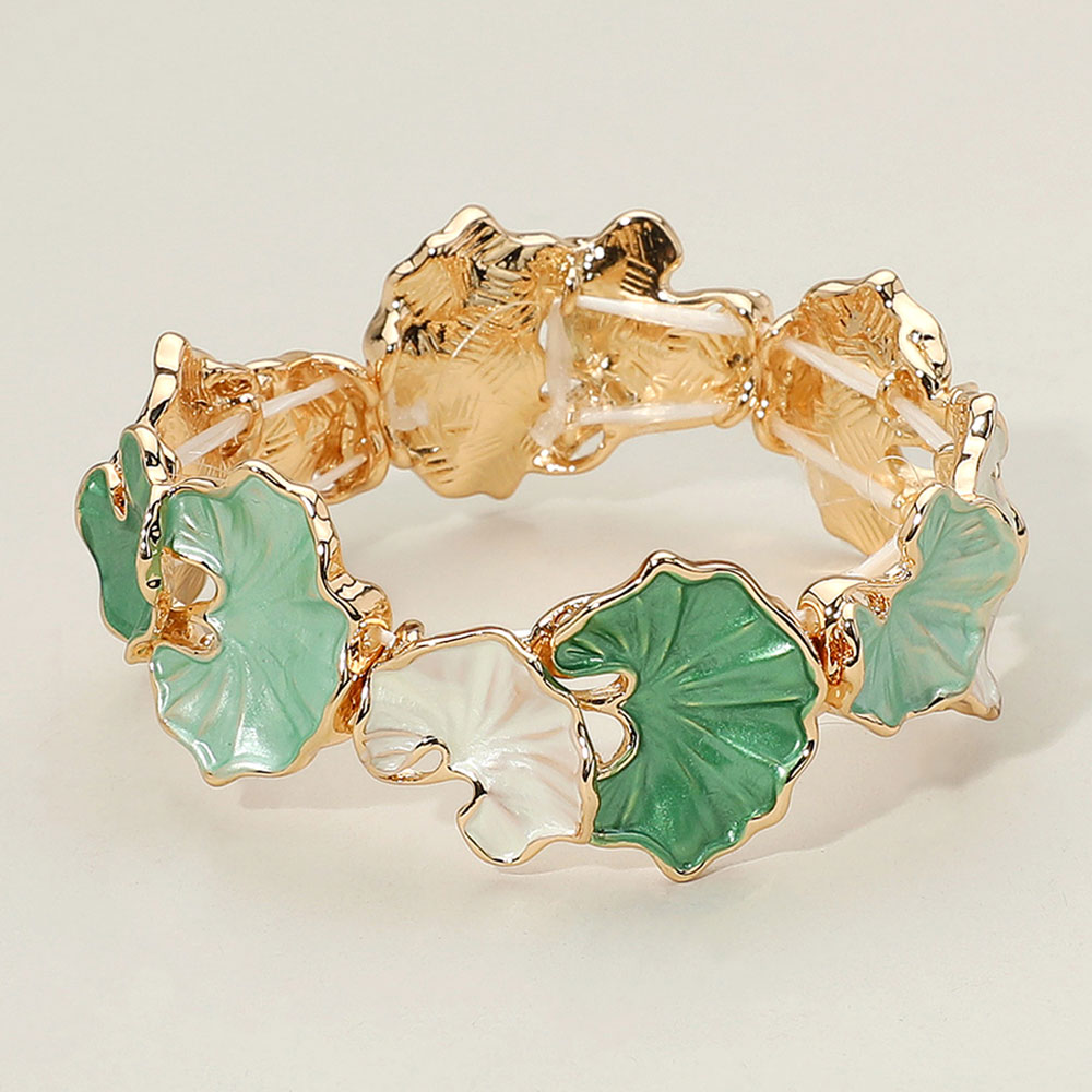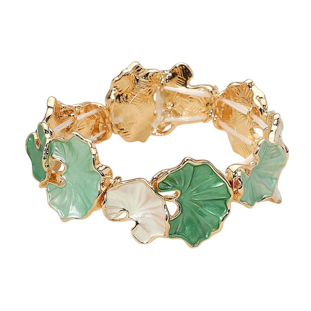 Colored Metal Gingko Leaves Link Stretch Bracelet