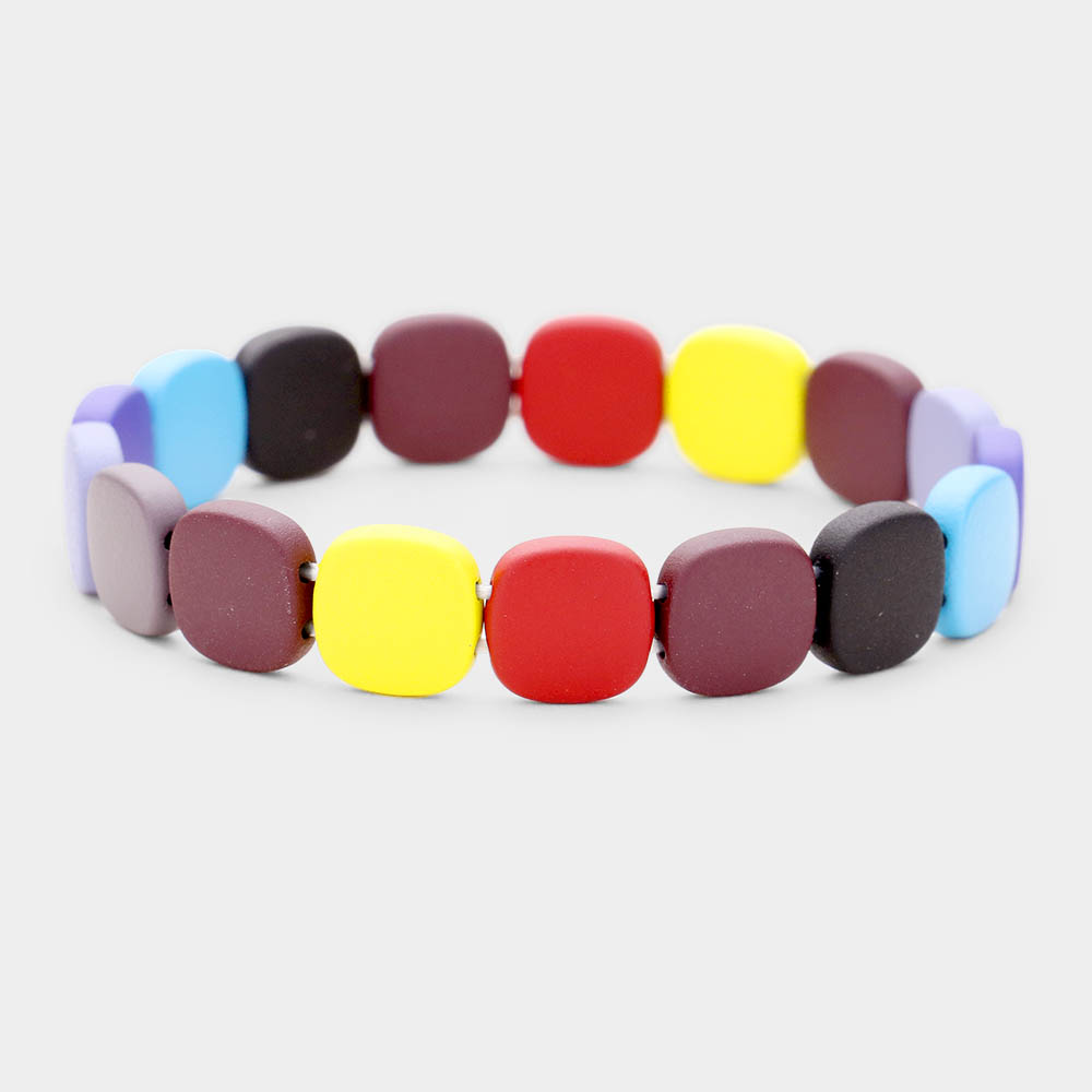 2PCS - Mixed Flat Wood Metal Faceted Beaded Stretch Multi Layered Bracelets