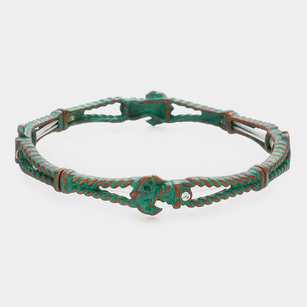 Crystal Detail Embossed Metal Anchor Stretch Bracelet