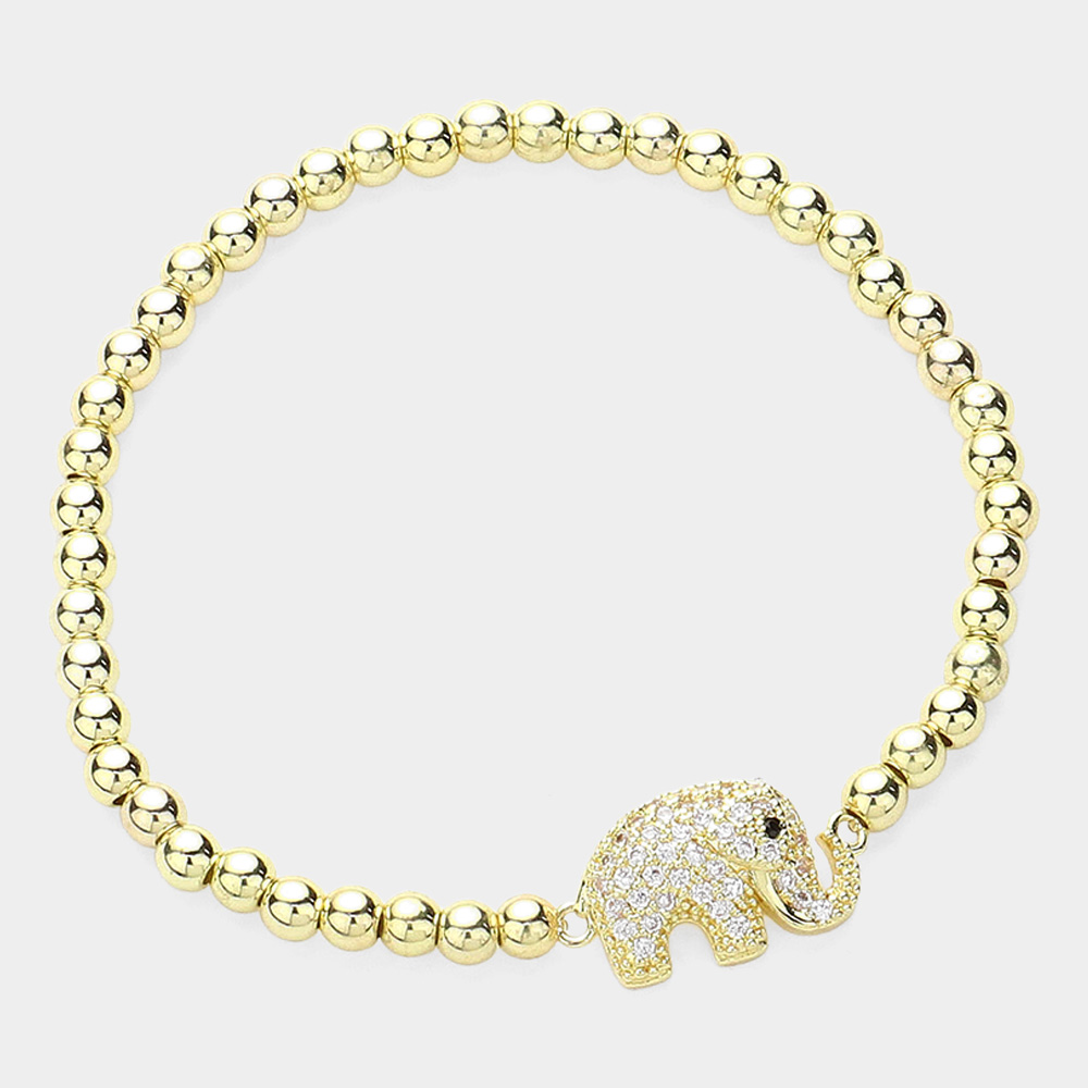 CZ Stone Paved Elephant Pointed Stainless Steel Ball Beaded Stretch Bracelet