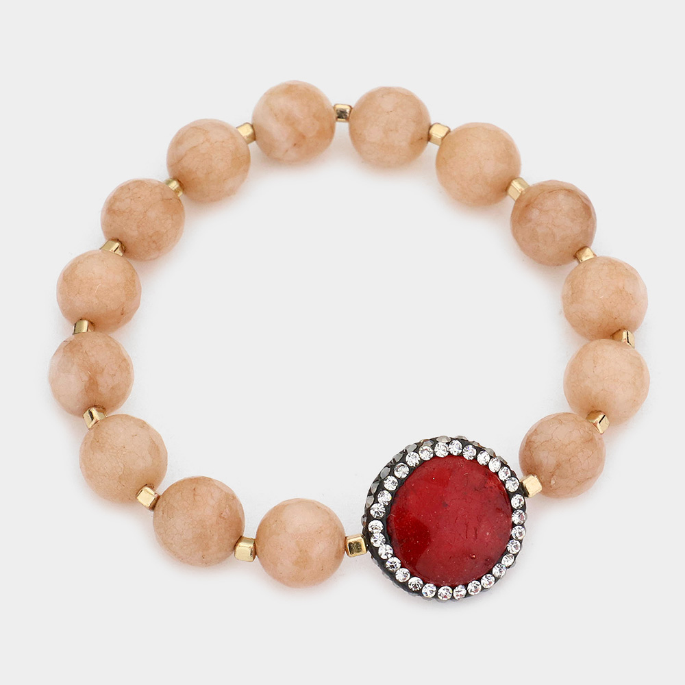 Double sided crystal trim natural stone beaded strand stretch bracelet
