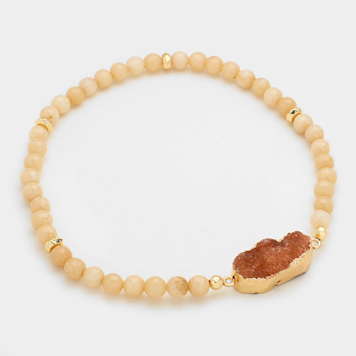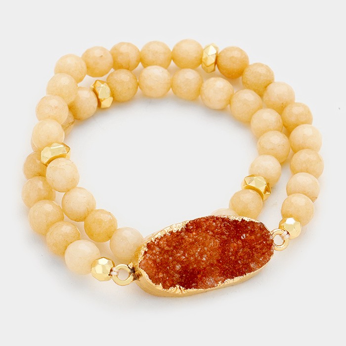 Druzy stone accented natural stone bead strand wrap stretch bracelet