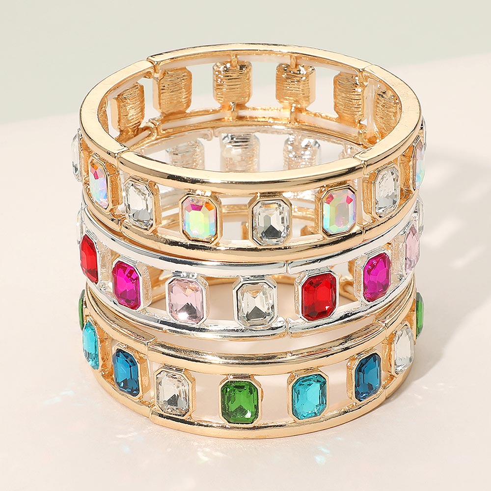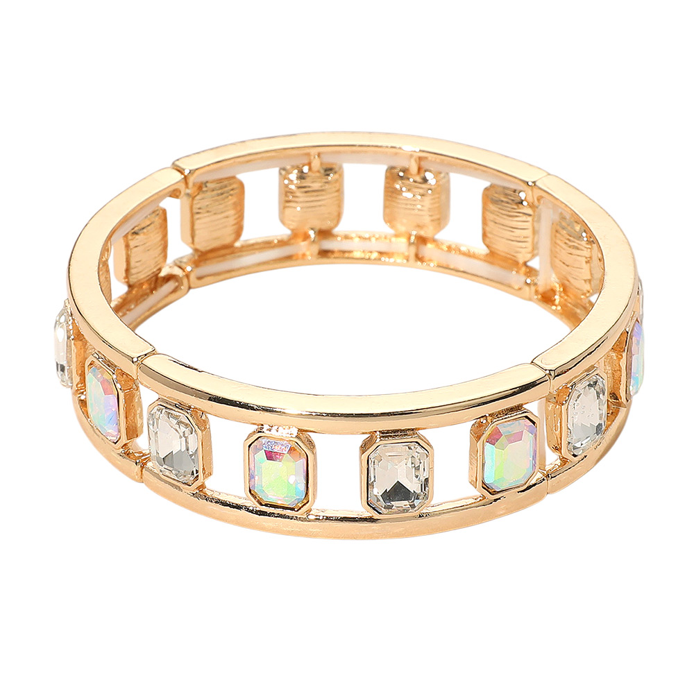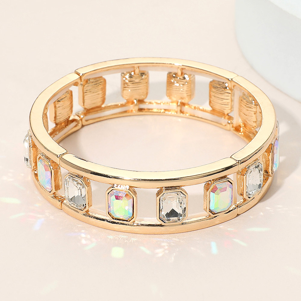 Emerald Cut Stone Embellished Open Frame Stretch Bracelet