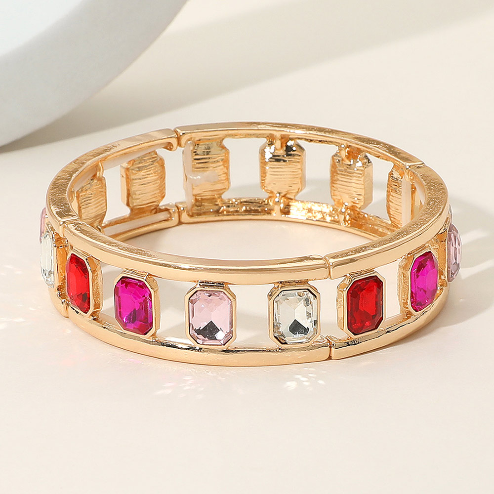 Emerald Cut Stone Embellished Open Frame Stretch Bracelet Emerald Cut Stone Embellished Open Frame Stretch Bracelet