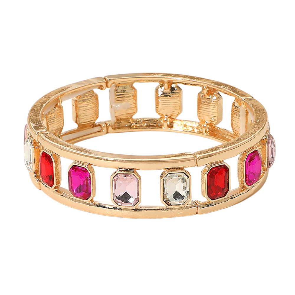Emerald Cut Stone Embellished Open Frame Stretch Bracelet