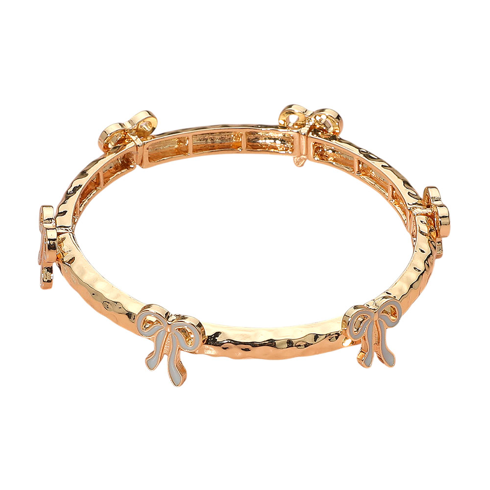 Enamel Bow Accent Hammered Metal Bar Beaded Stretch Bracelet