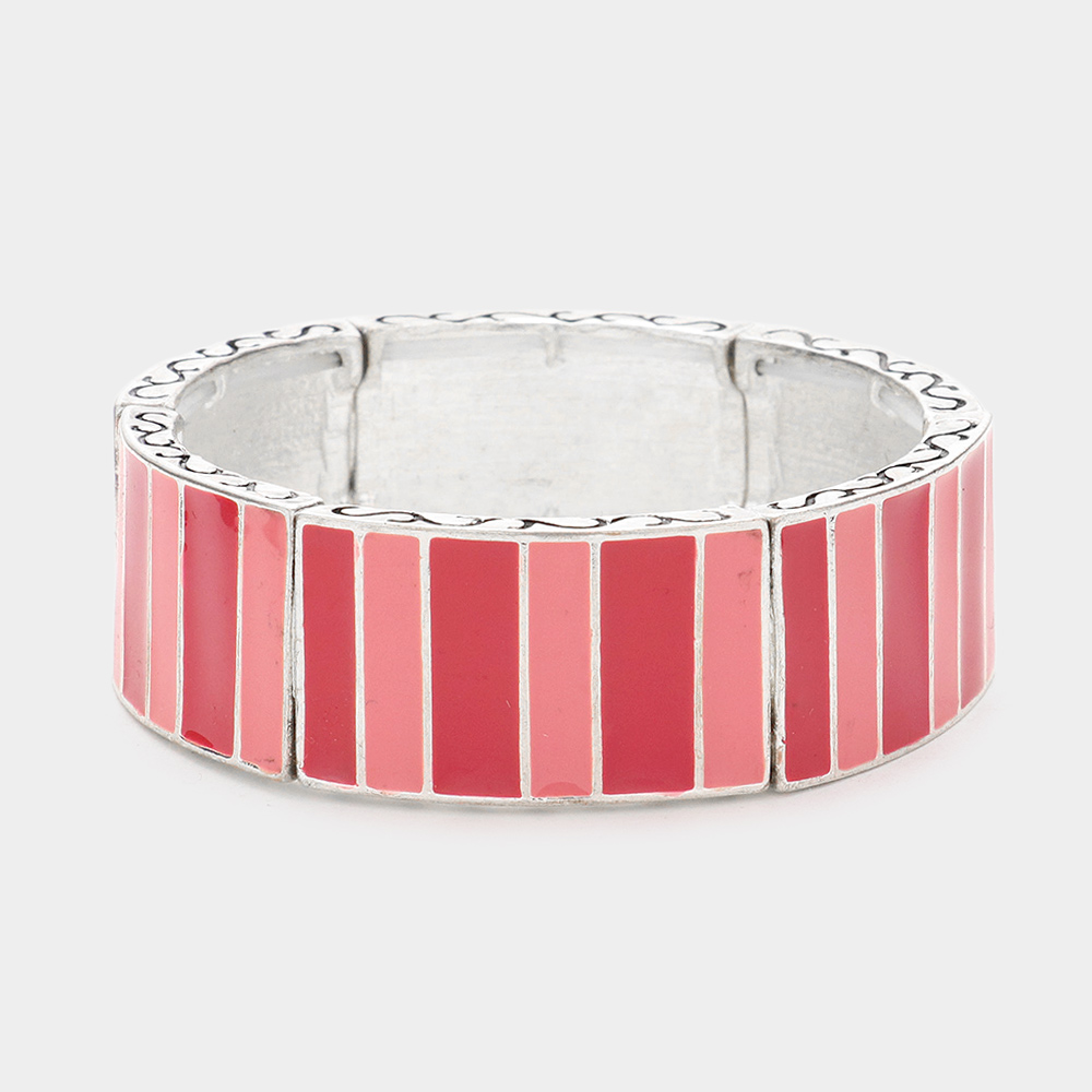 5PCS - Wood Faceted Beaded Paperclip Chain Stretch Multi Layered Bracelet
