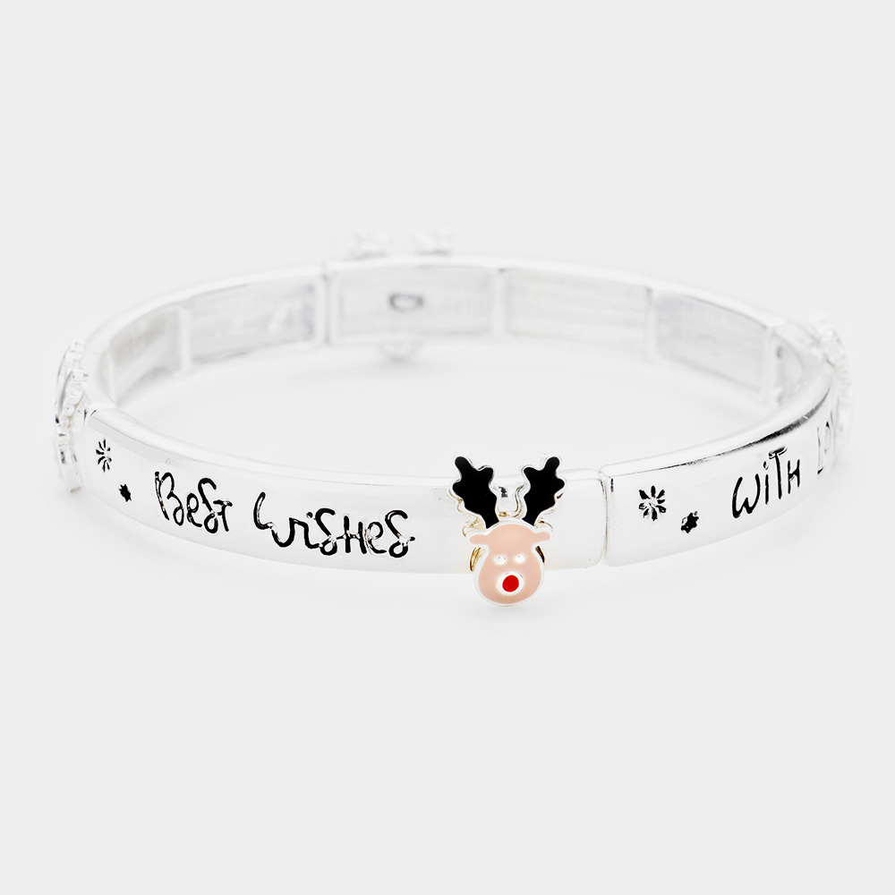 Enamel Rudolph Pointed Christmas Message Stretch Bracelet