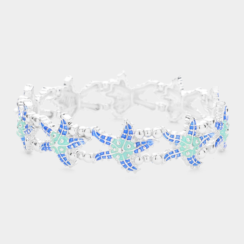 Sea Glass Enamel Sea Turtle Pointed Stretch Bracelet