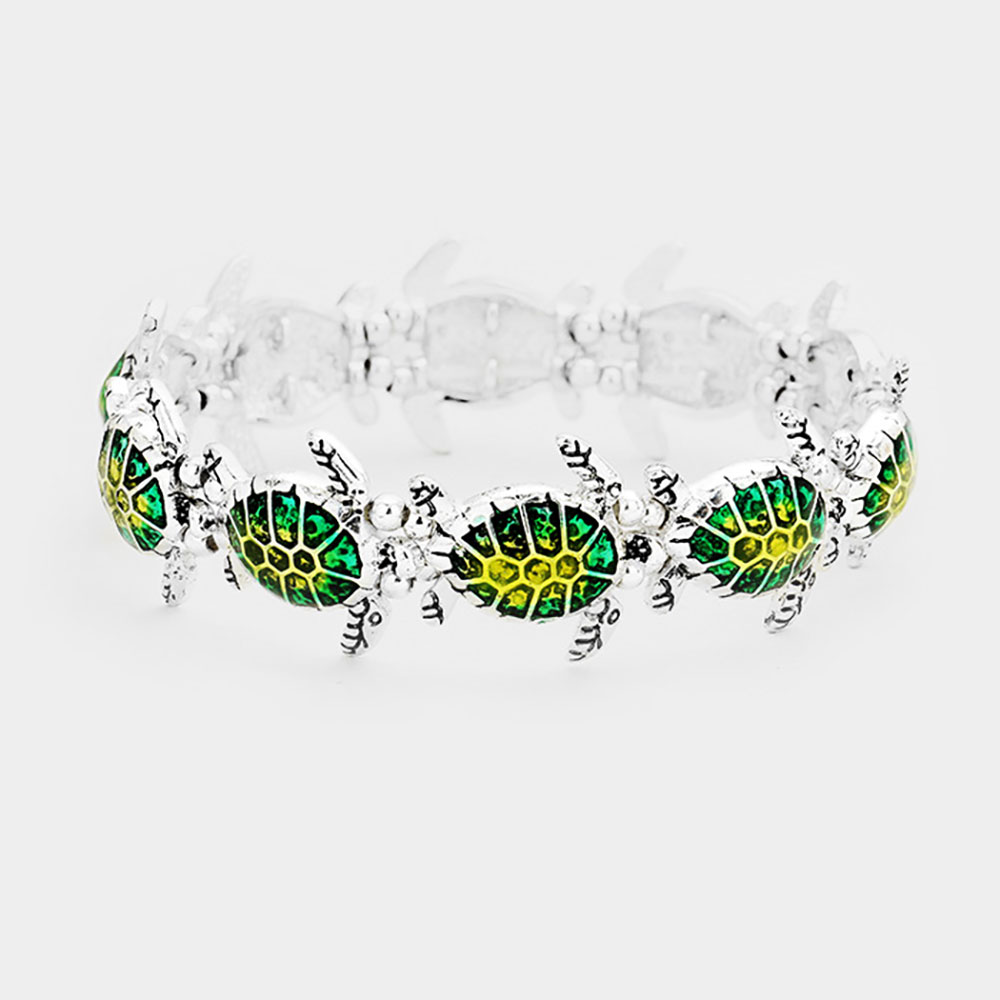 Enamel Turtle Metal Stretch Bracelet