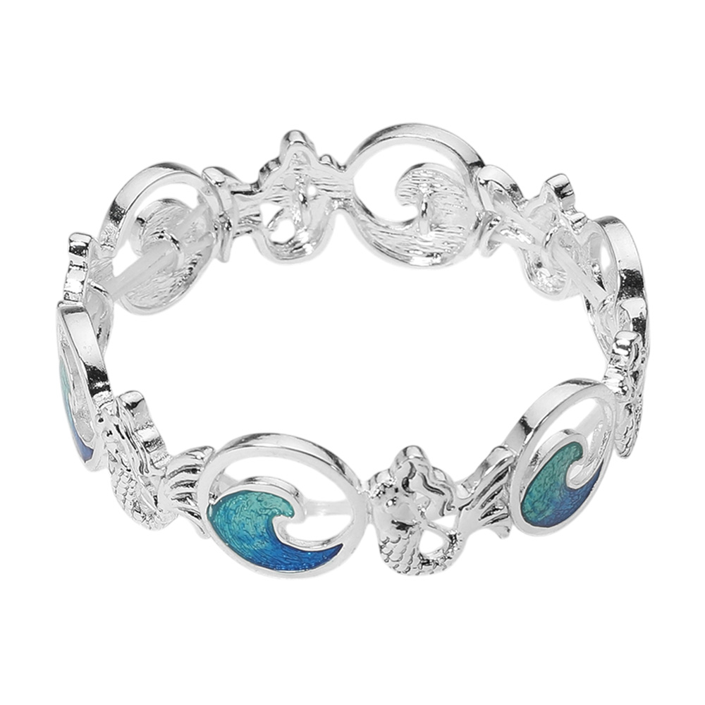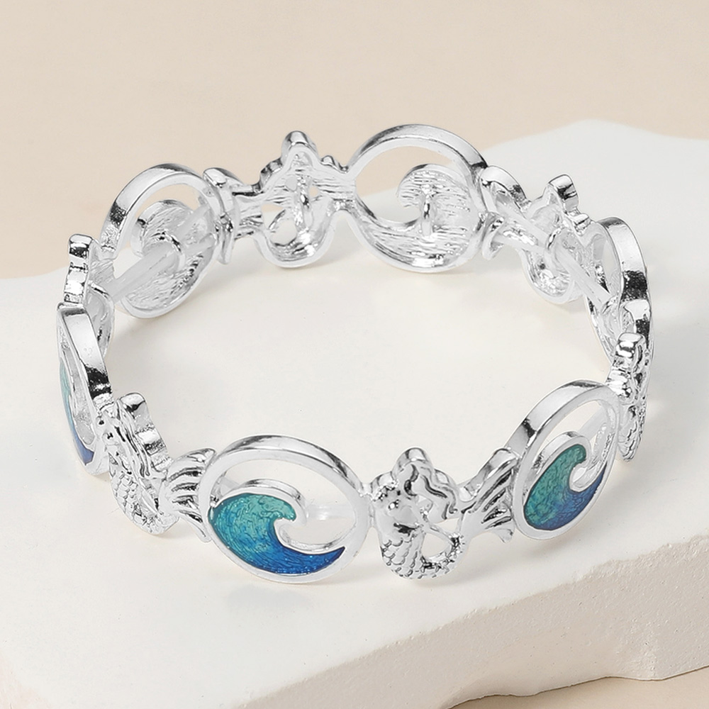 Details • Size : 0.7" H • Stretchable • Elegant bracelet featuring wave motifs for a serene ocean-inspired look. Perfect for beach outings, summer events, or adding a touch of seaside charm to everyday wear, ideal for ocean lovers and travelers. • Lead and Nickel Compliant
