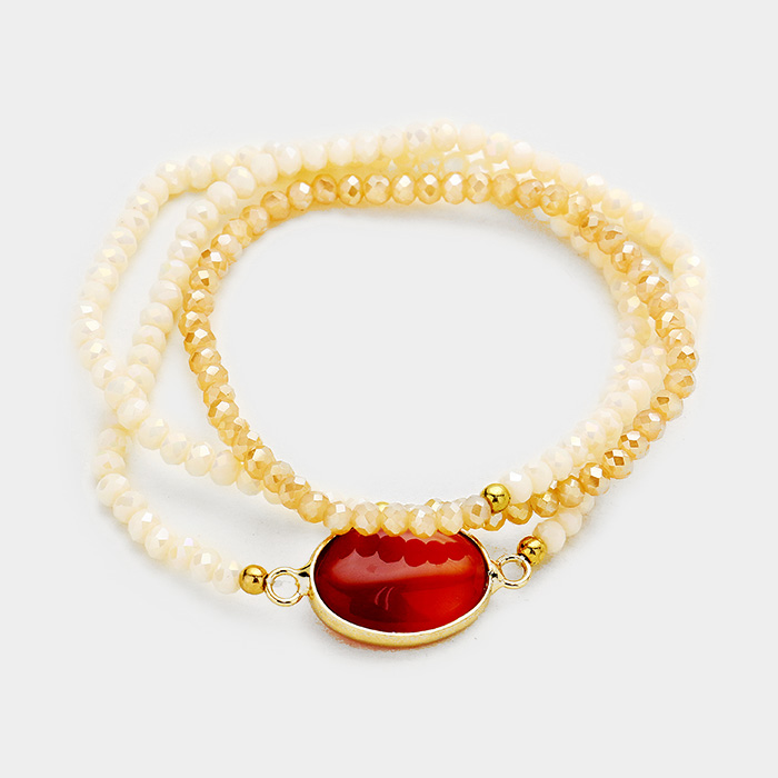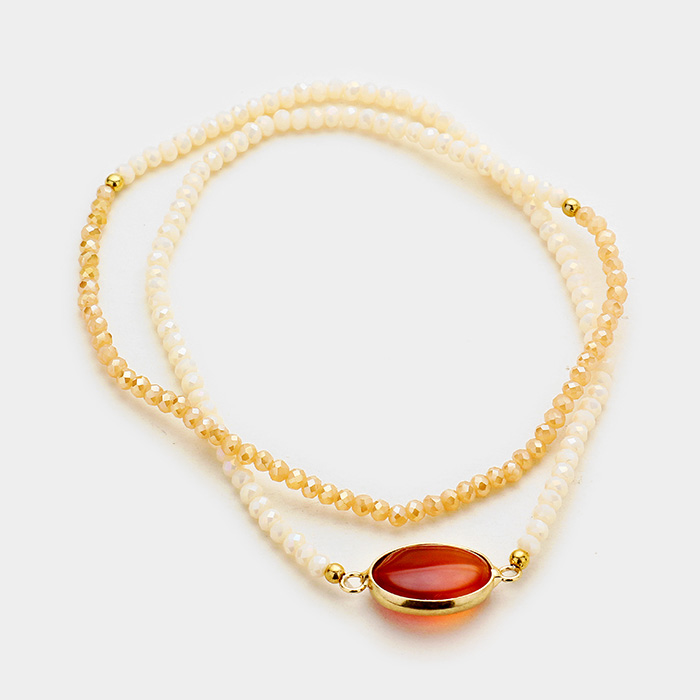 Faceted Beaded Oval Stone Accented Wrap Stretch Bracelet