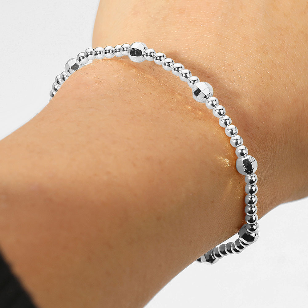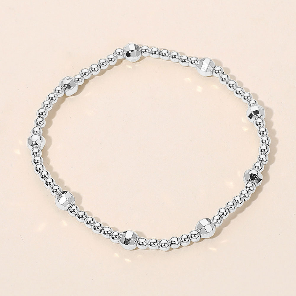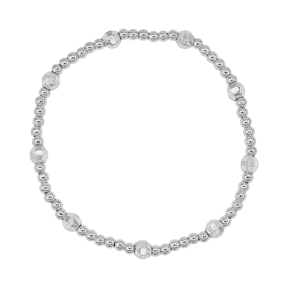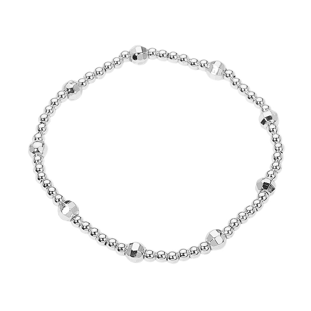Details • Size : 0.2" H • Stretchable • Elegant stretch bracelet crafted with polished stainless steel round beads and faceted accents for subtle texture. Lightweight and versatile, perfect for everyday wear or layering with other bracelets for a chic, modern look. • Stainless Steel