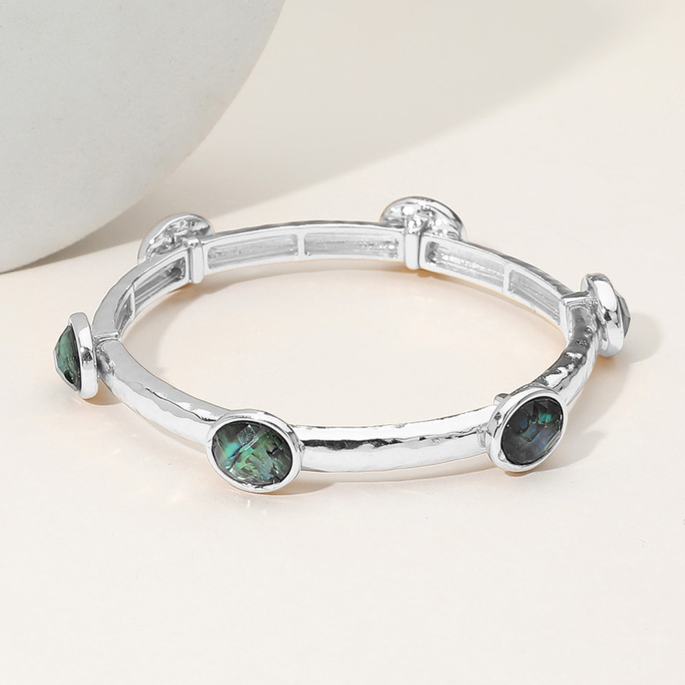 Faceted Round Stone Pointed Hammered Metal Stretch Bracelet