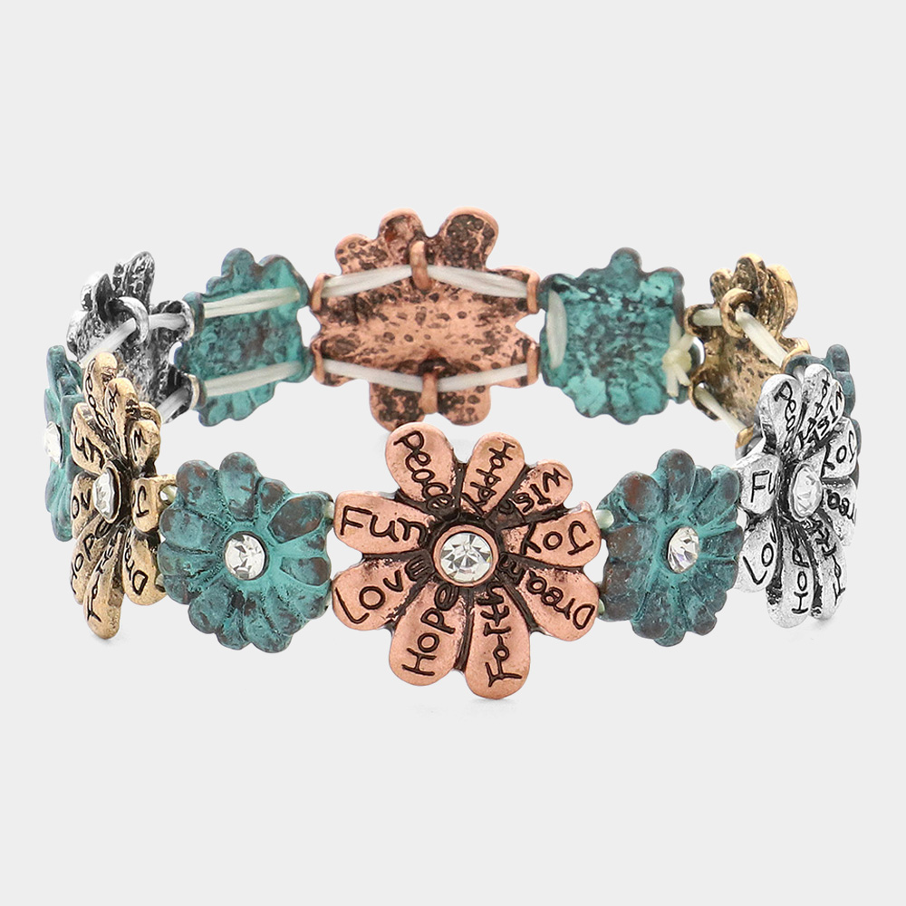 Vintage Metal Engraved Circle Beaded Stretch Bracelet