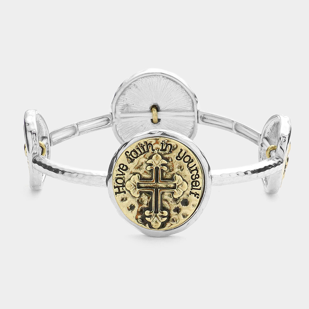 Faith In Yourself Message Two Tone Stretch Bracelet
