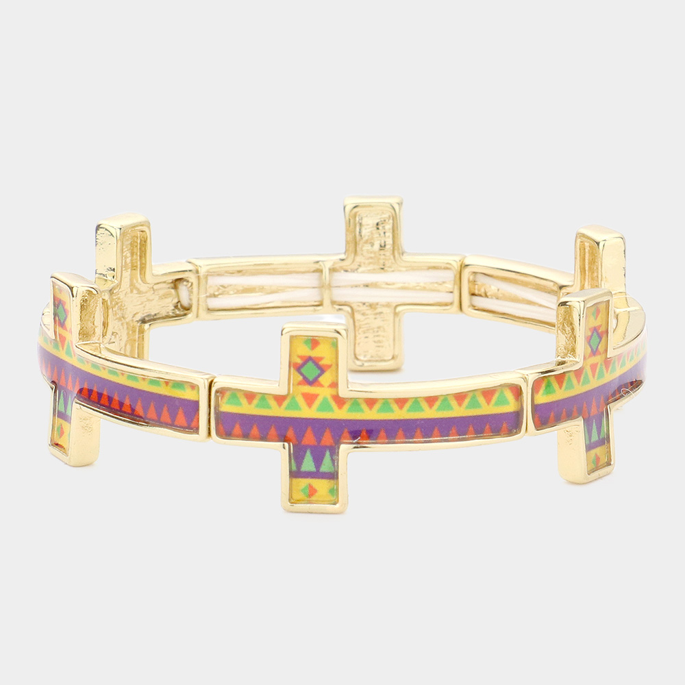 Funky Lacquered Triangle Cross Stretch Bracelet