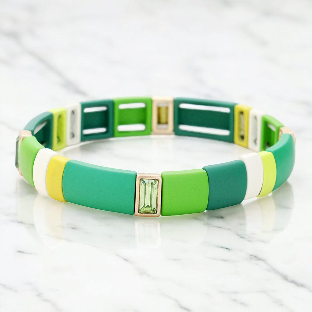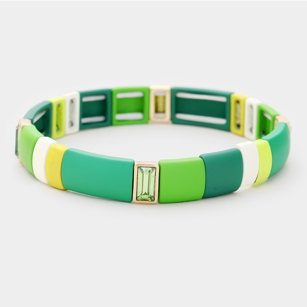 Pave Trim Crystal Oval Stone Stretch Evening Bracelet