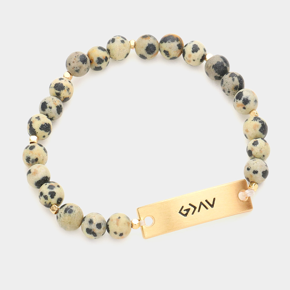 God is Greater Than The Highs And The Lows Metal Bar Natural Stone Stretch Bracelet