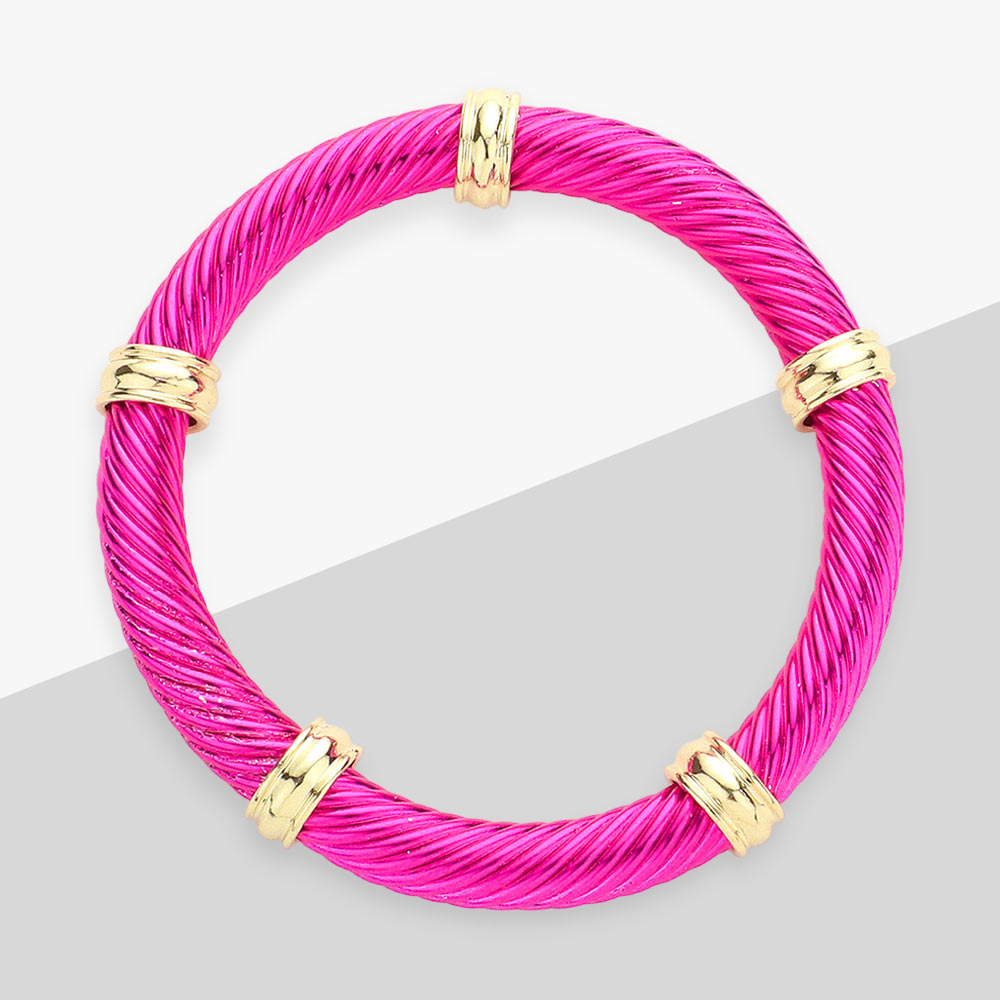 Gold Ring Pointed Twisted Metal Stretch Bracelet