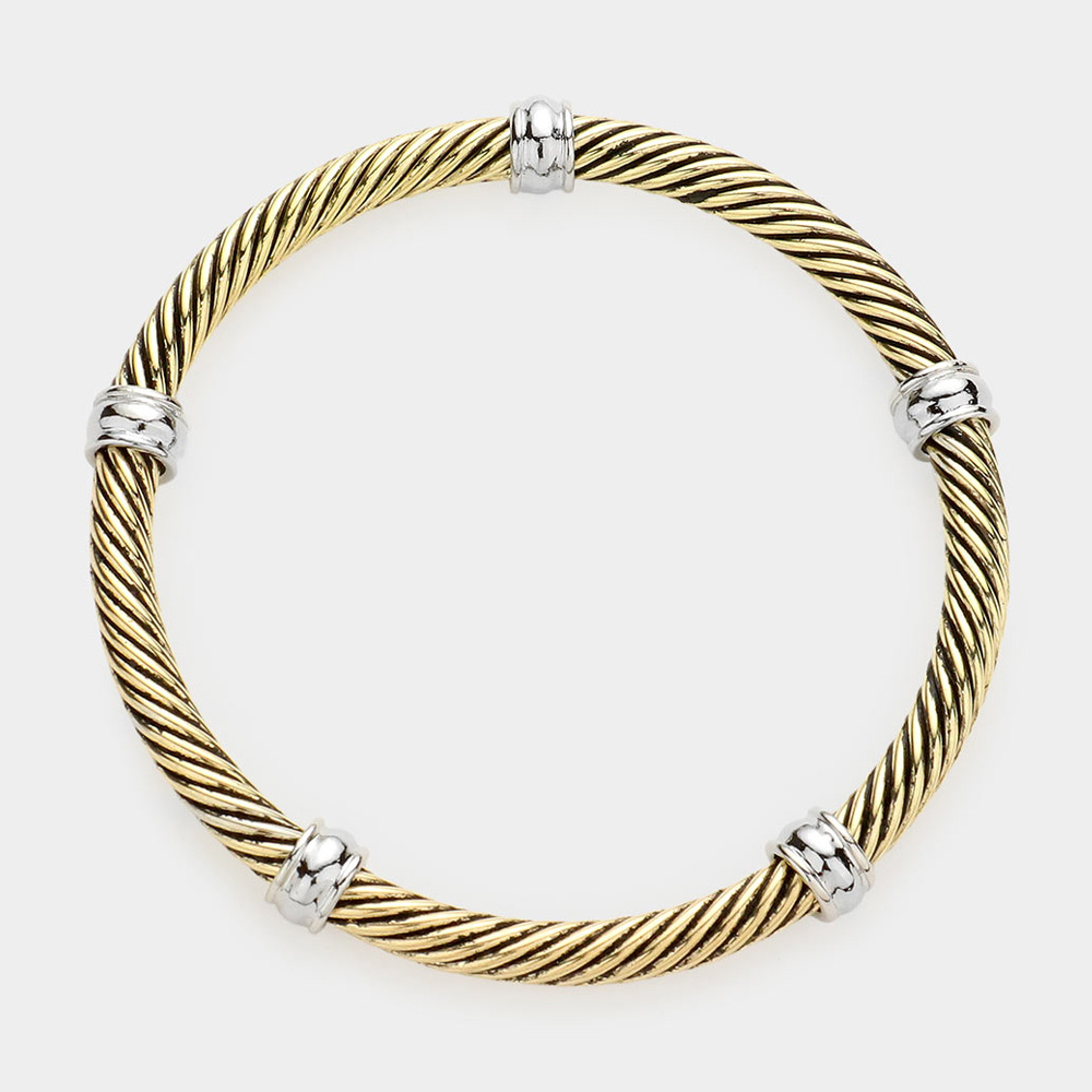 Gold Ring Pointed Twisted Metal Stretch Bracelet