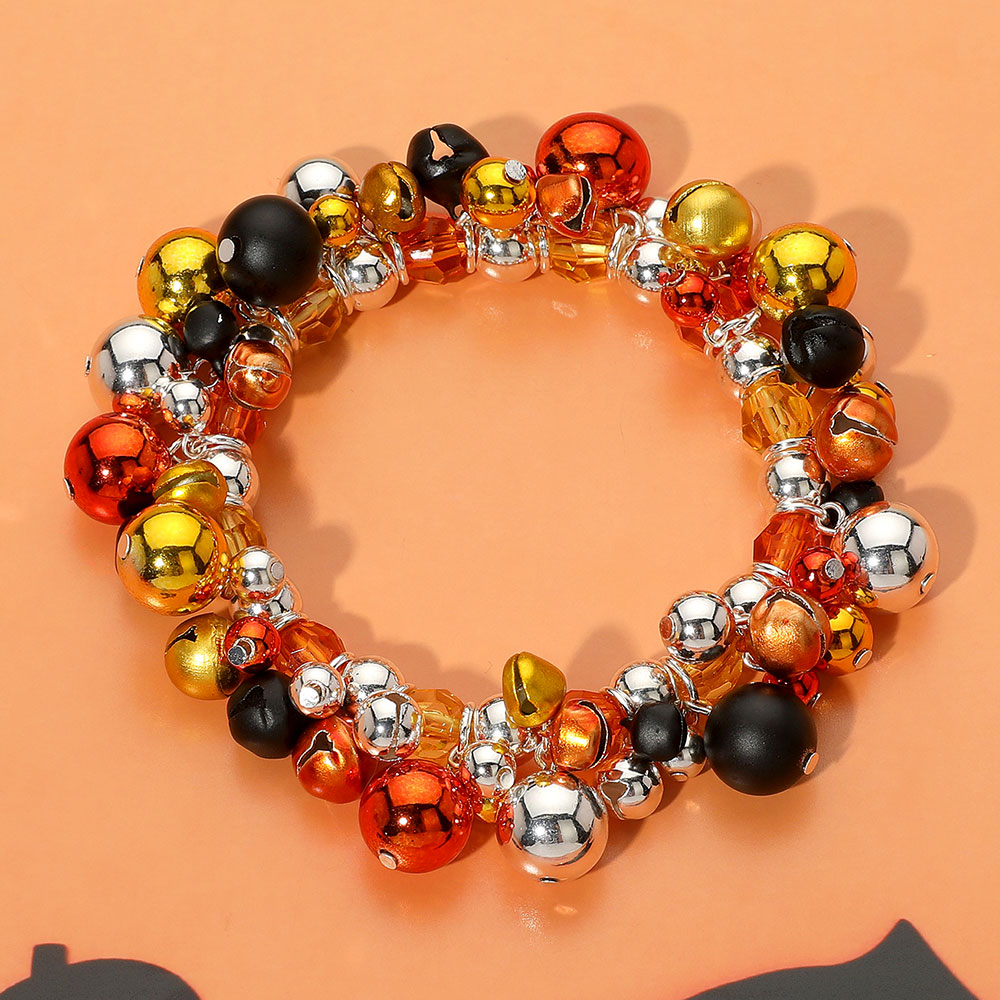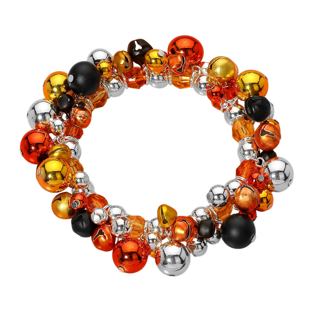 • Festive Halloween stretch bracelet with assorted round beads and jingle bell charms. A playful and colorful accessory ideal for seasonal celebrations, parties, or fun costume accents. Comfortable and eye-catching.