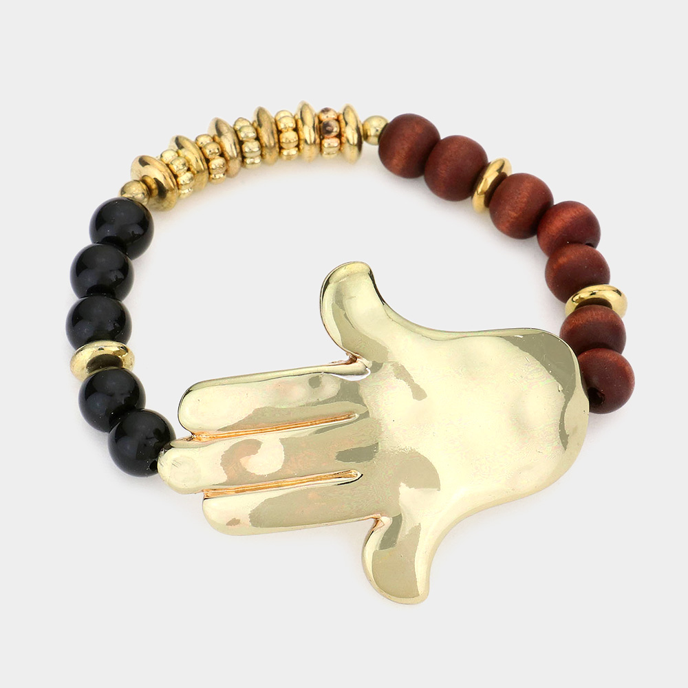 Faceted Bead Textured Metal Accented Stretch Bracelet