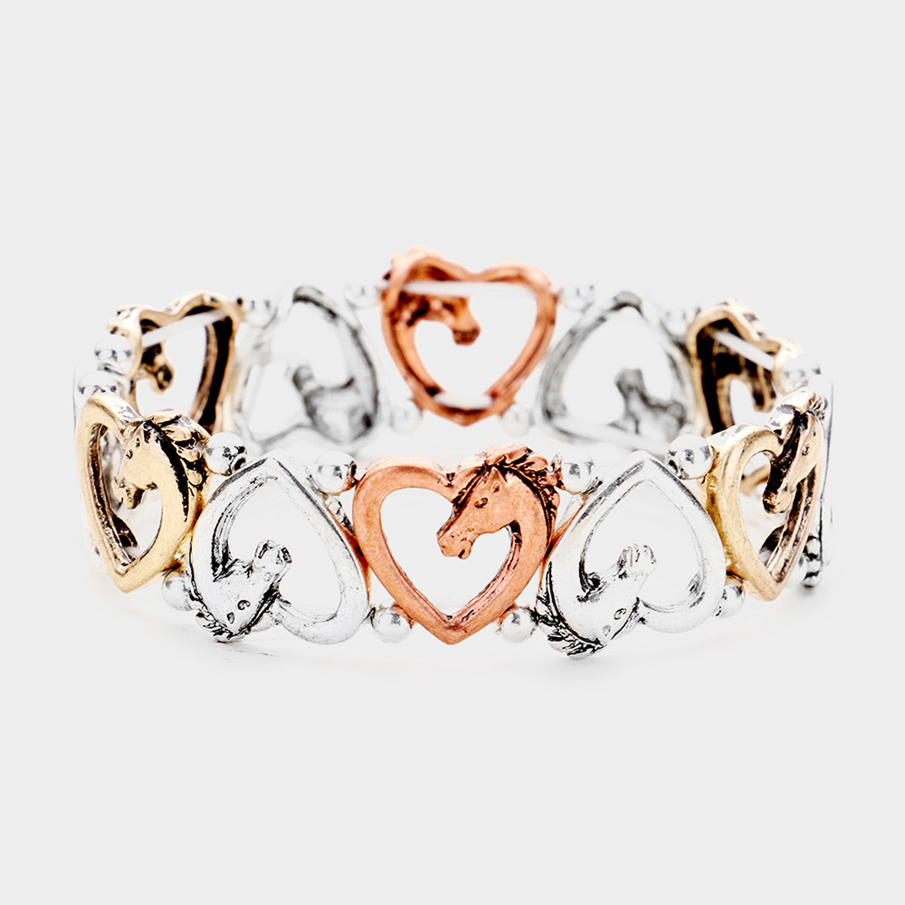 Heart Charm Accent Resin Pebble Beaded Stretch Bracelet