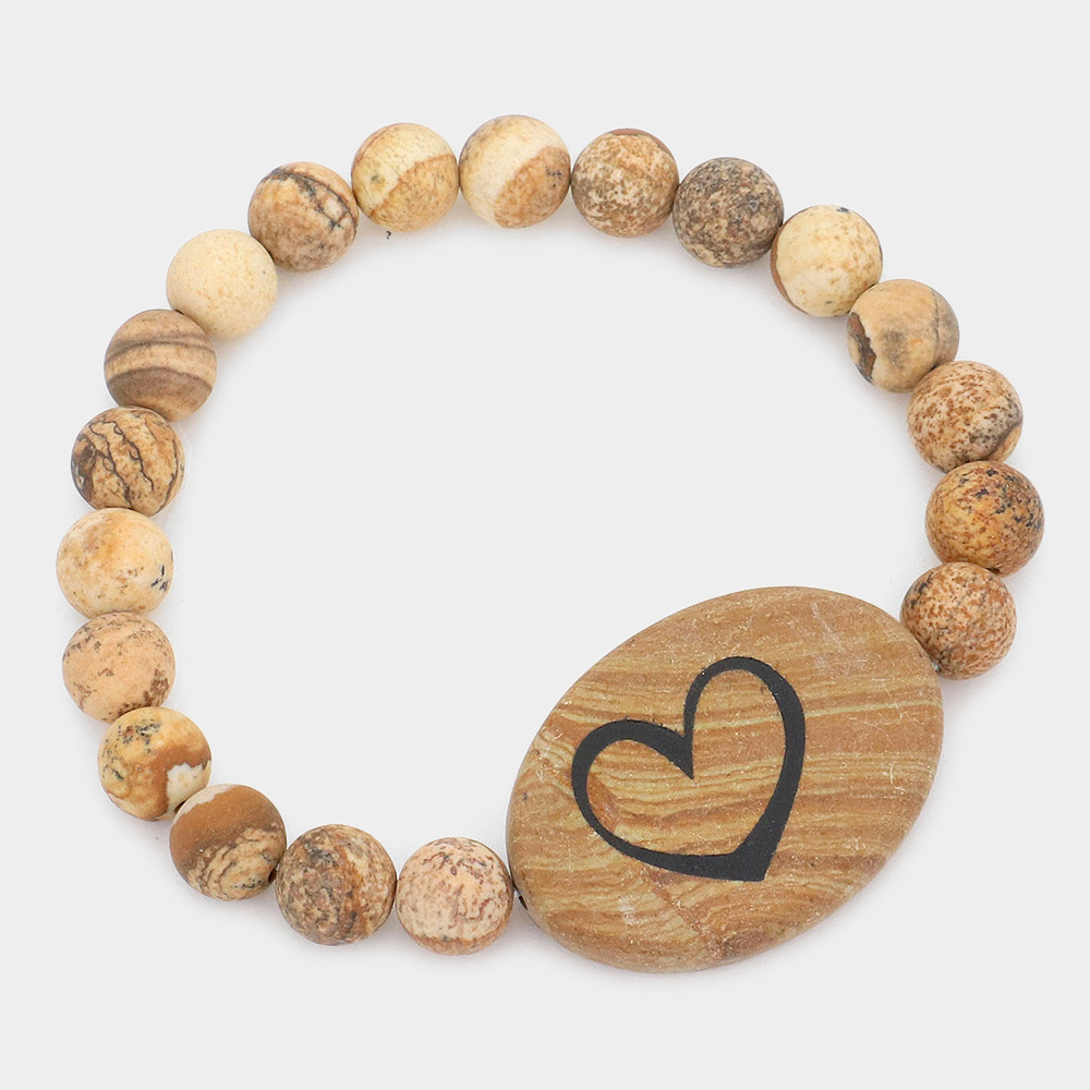 Heart Pointed Semi Precious Stone Stretch Bracelet
