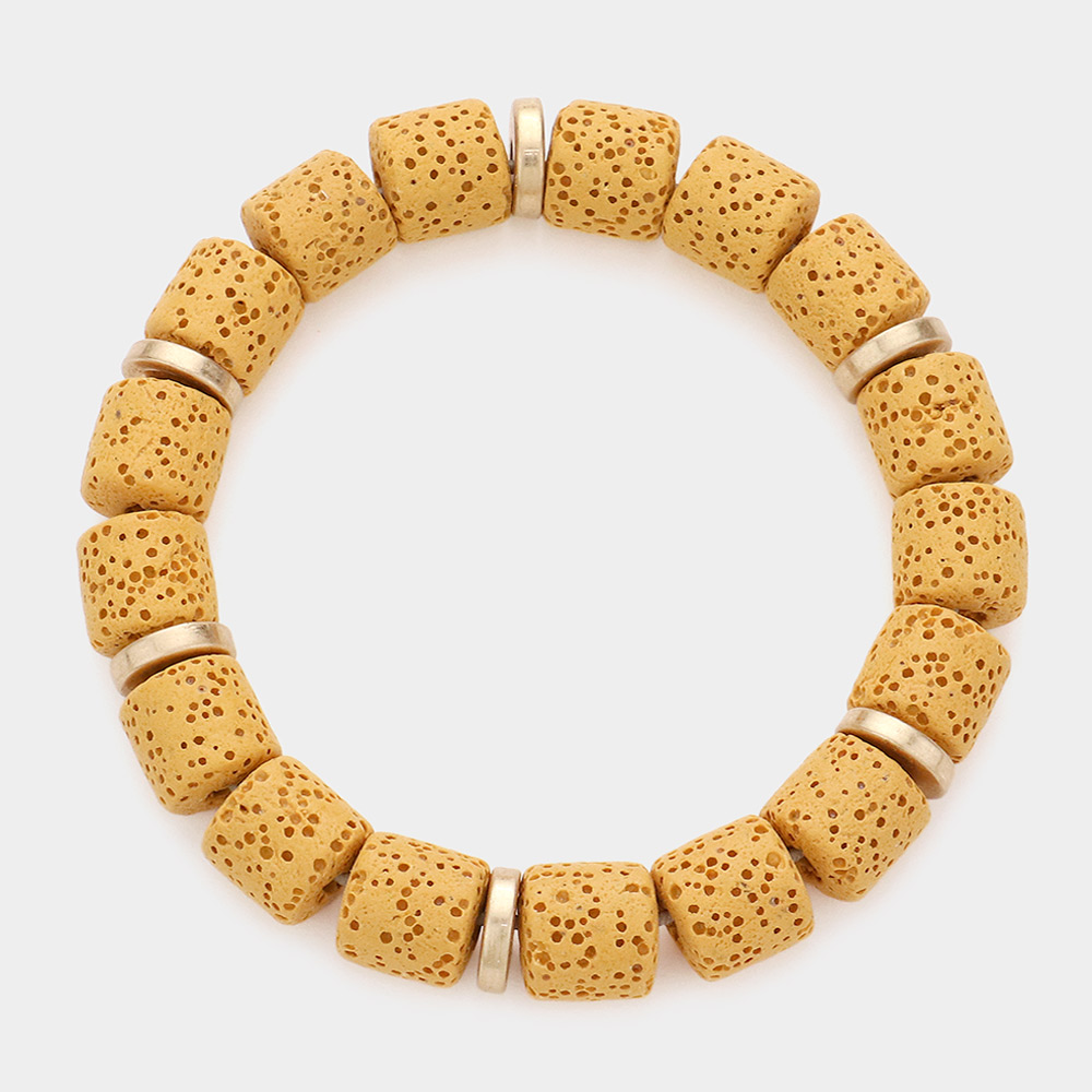 Triple Lava Rock Basalt Bead Accented Open Circle Dangle Earrings