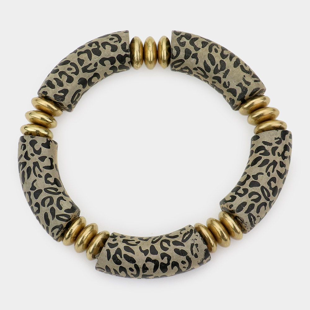 Round Square Faceted Gemstone Frame Beaded Stretch Bracelet