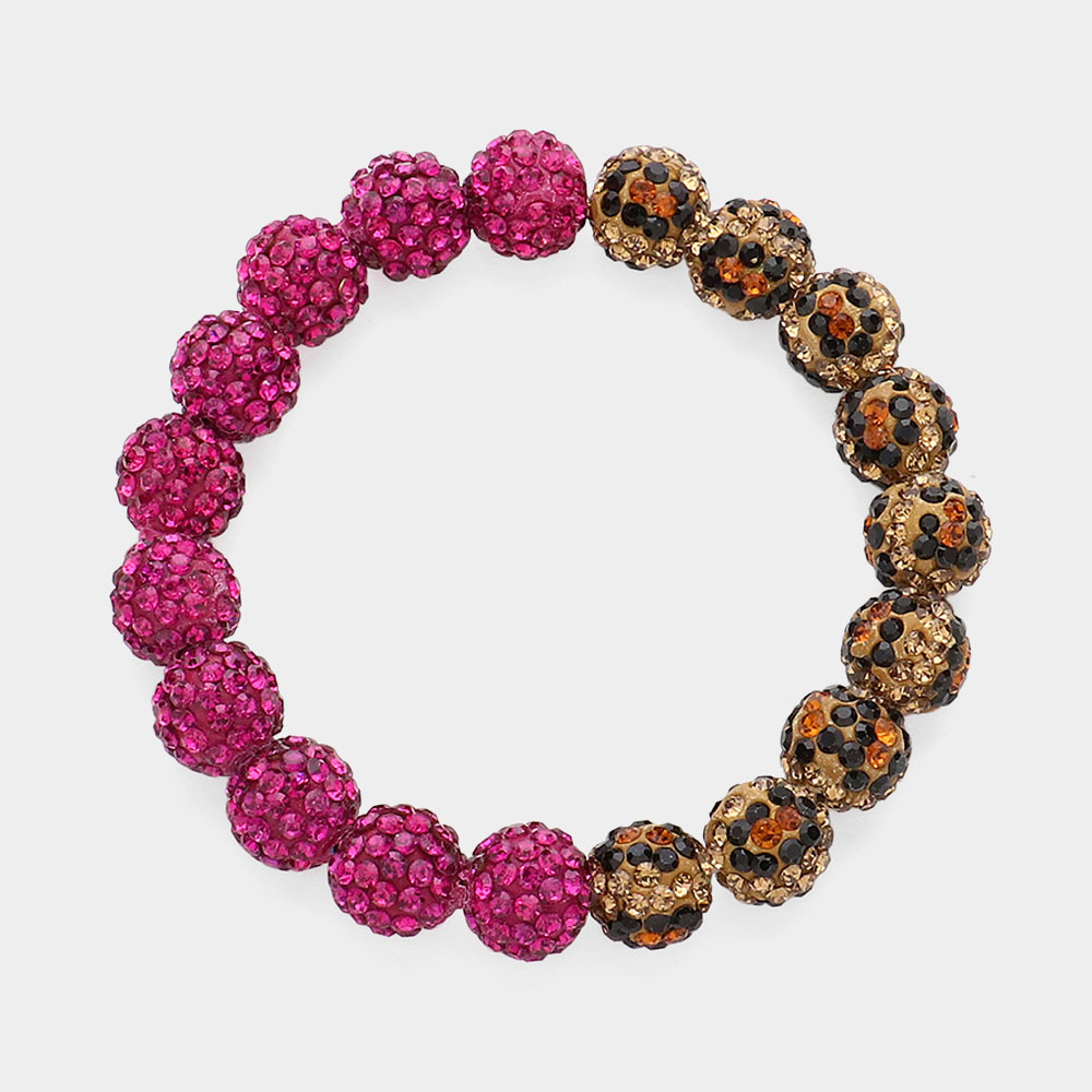 Leopard Shamballa Ball Beaded Pointed Stretch Bracelet